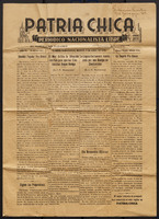 Weekly, Spanish-language newspaper published in Ciudad Mier, Tamaulipas, México by Adrián Tapia. Patria Chica was founded in 1933, and its subtitle “Periódico Nacionalista Libre” translates to “Free Nationalist Newspaper.” Content includes local and international news, editorials, advertisements, and announcements.