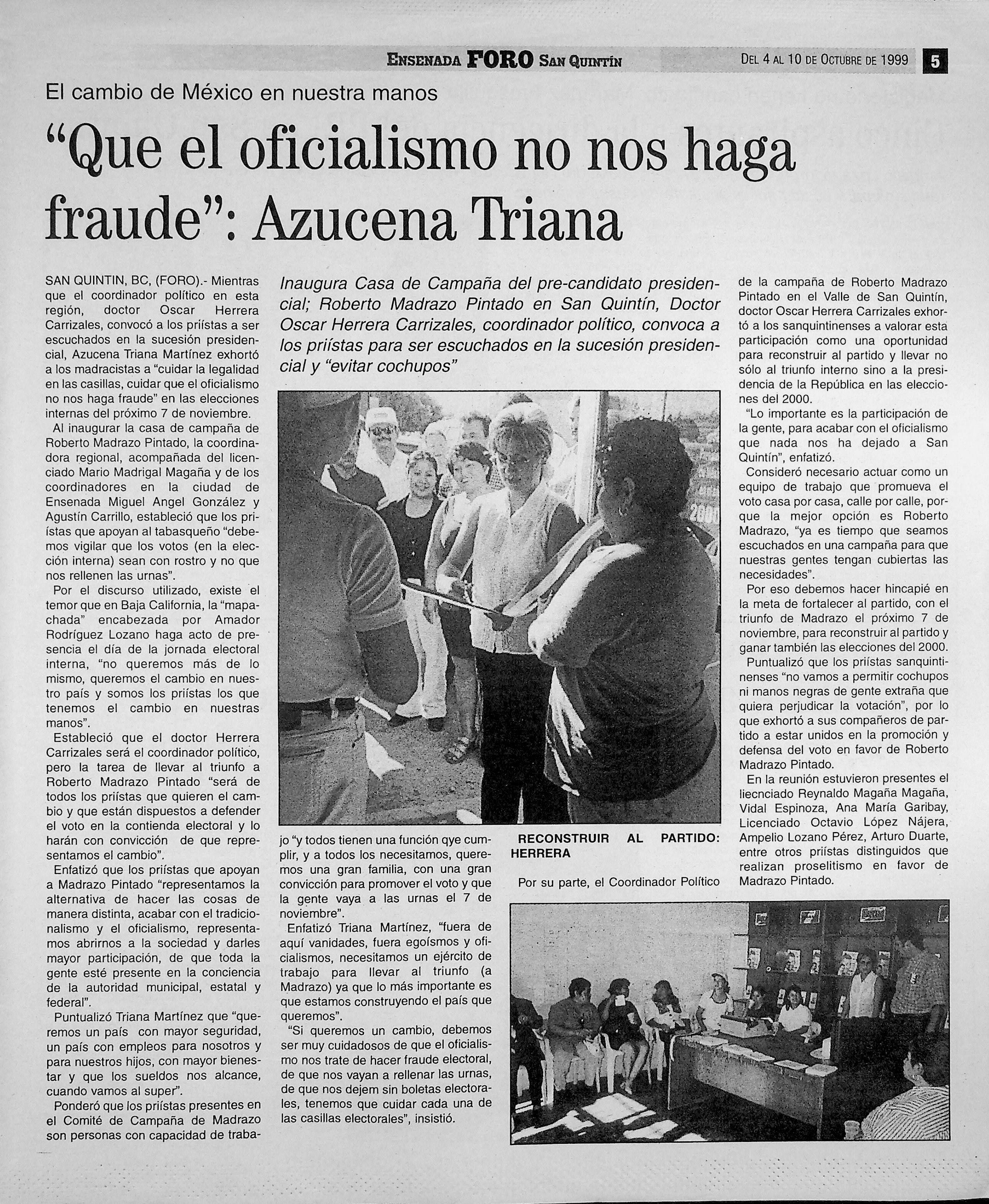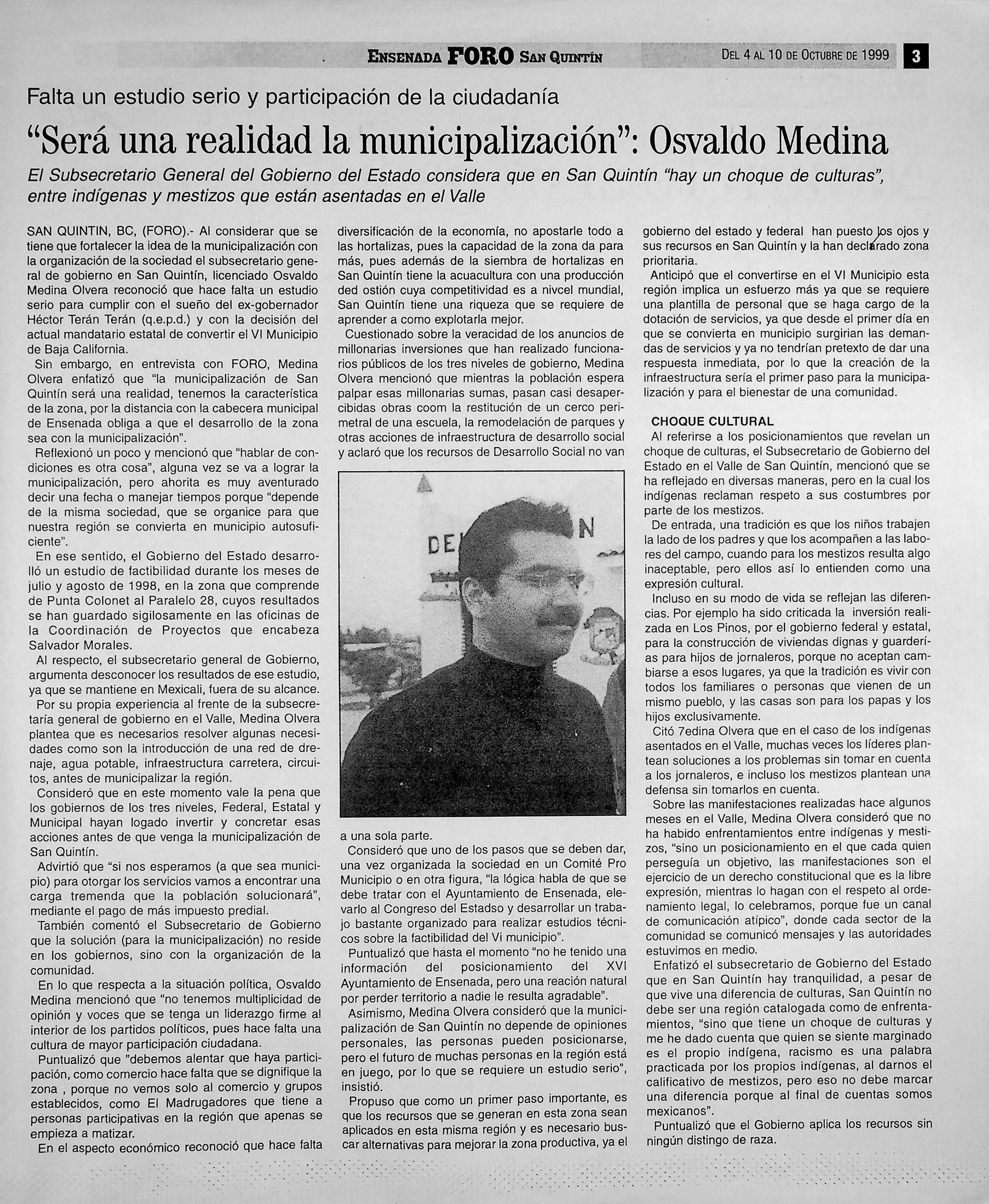 Foro, Año 1, Número 4, Segunda Epoca, October 4-10, 1999