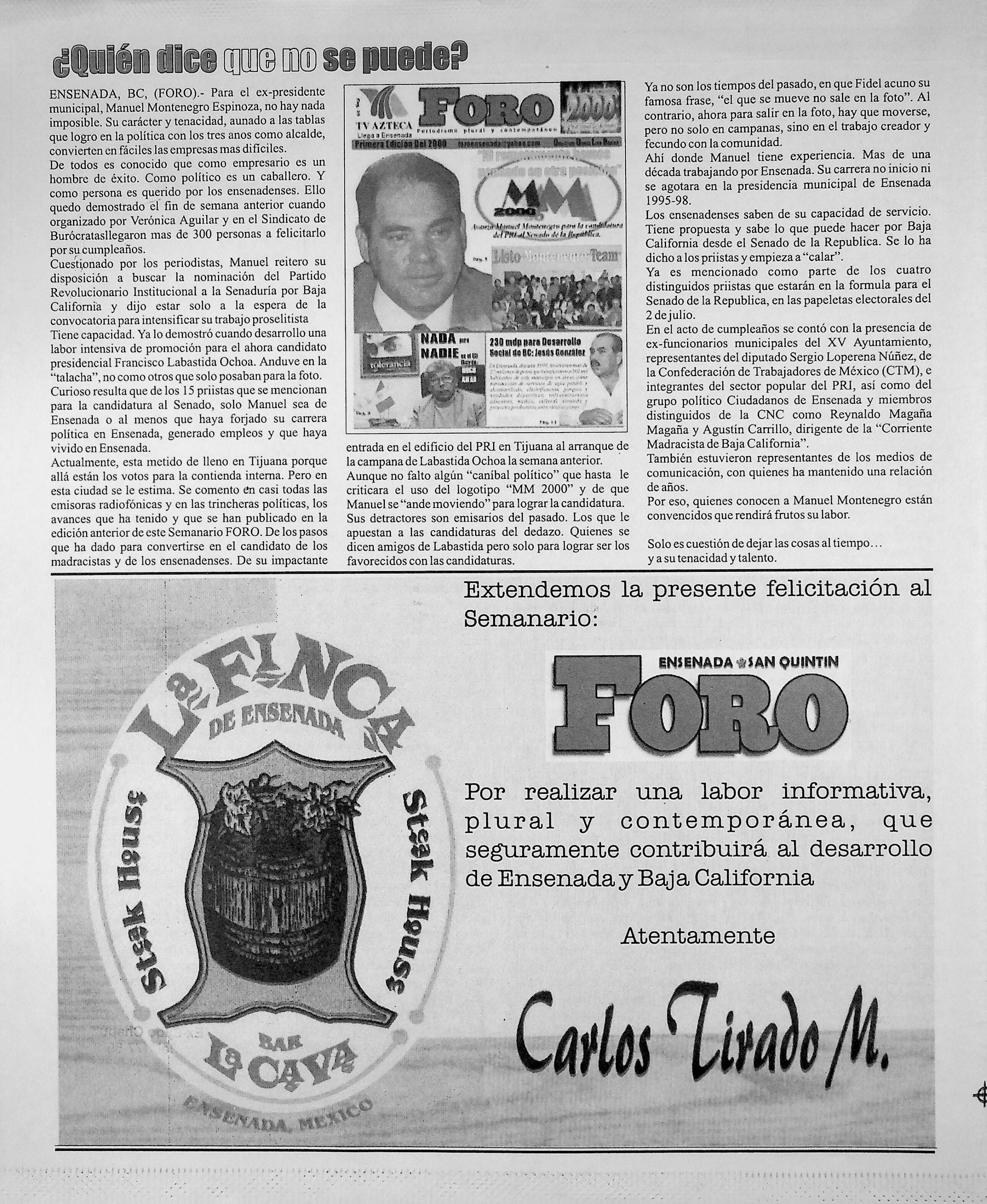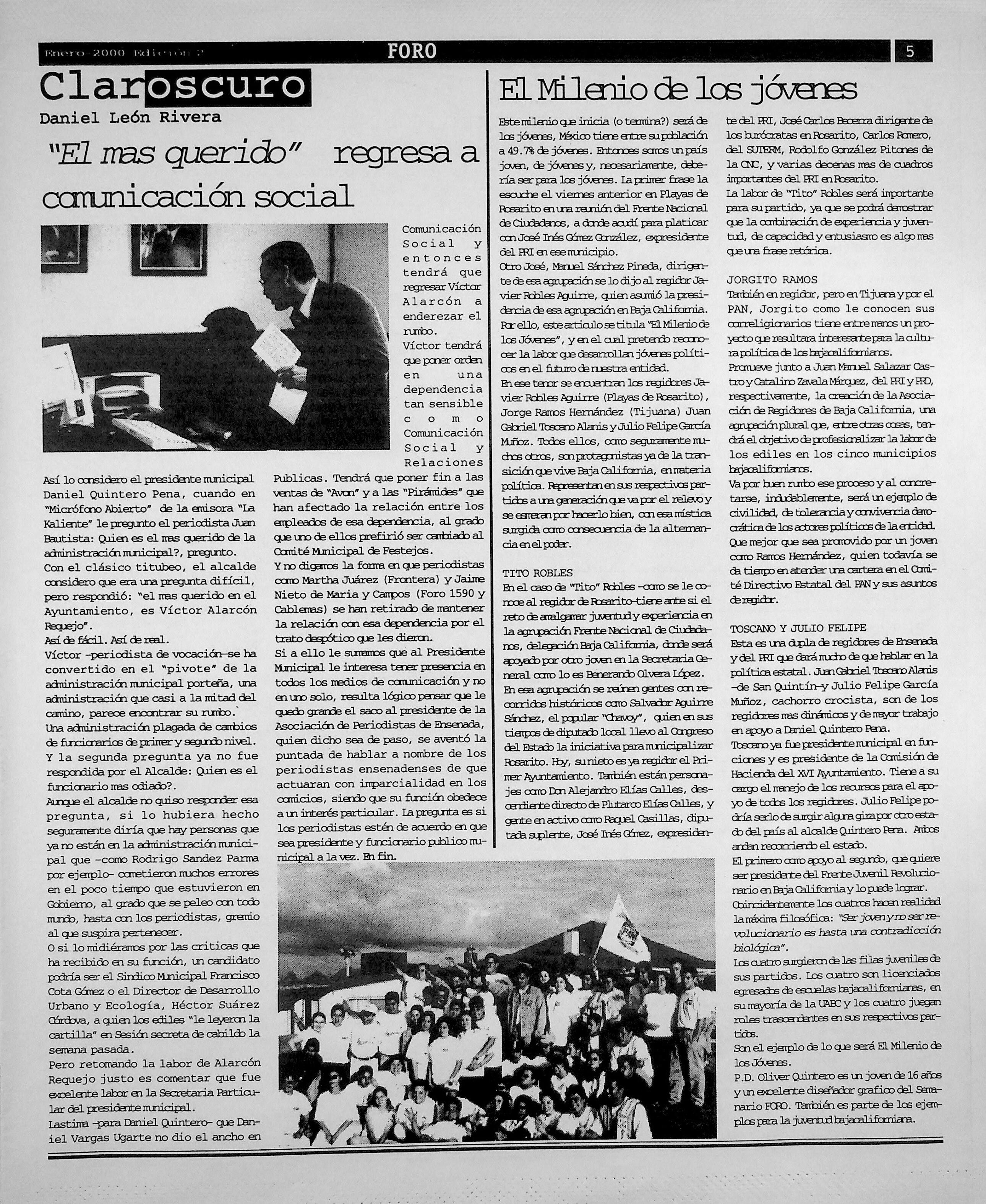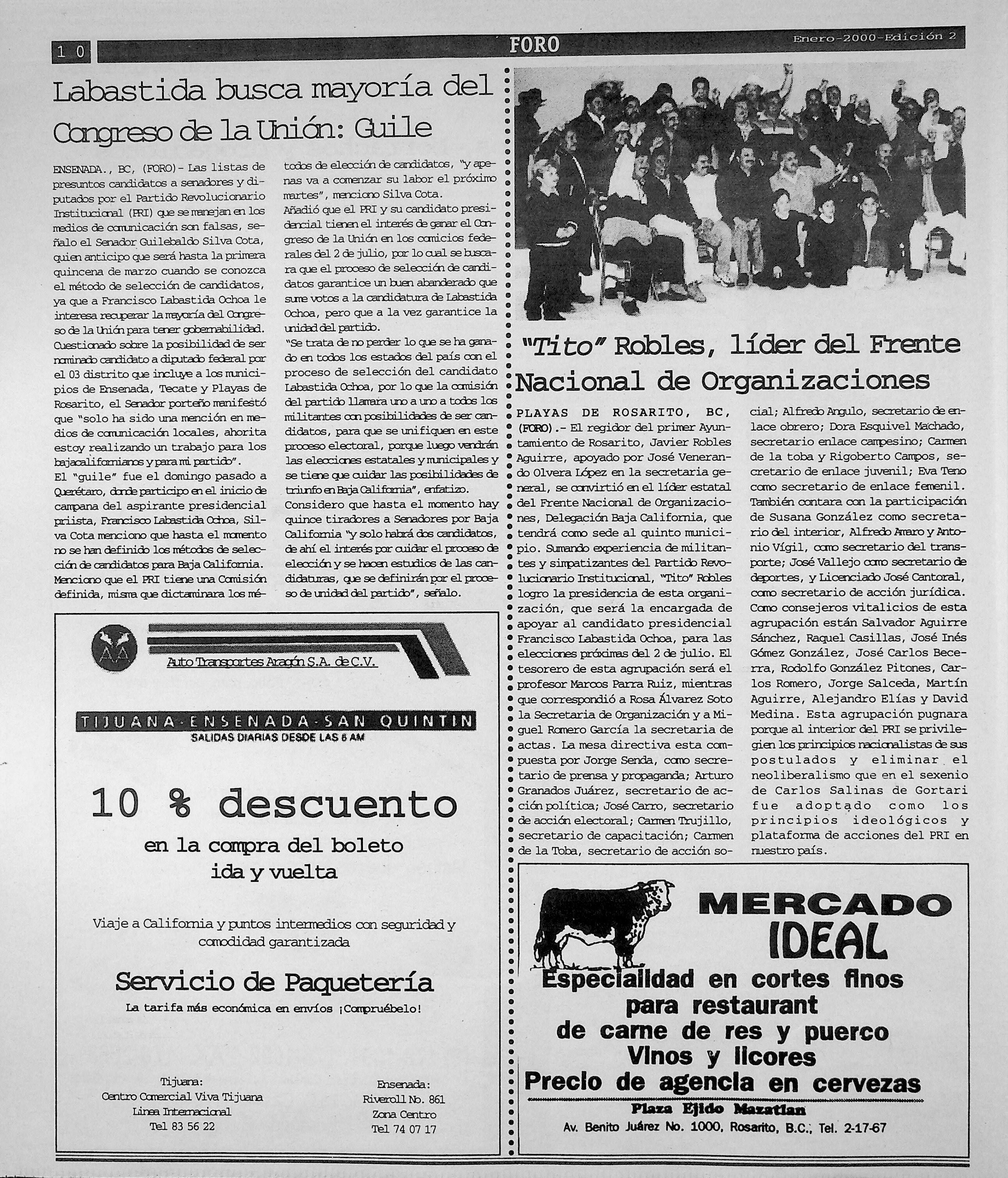 Foro-Semanario (Tijuana, Baja California, México), 2000, January 1. Periodicals in the US-Mexico Border Region. https://latinonewspapers.com/s/eng/item/36059.