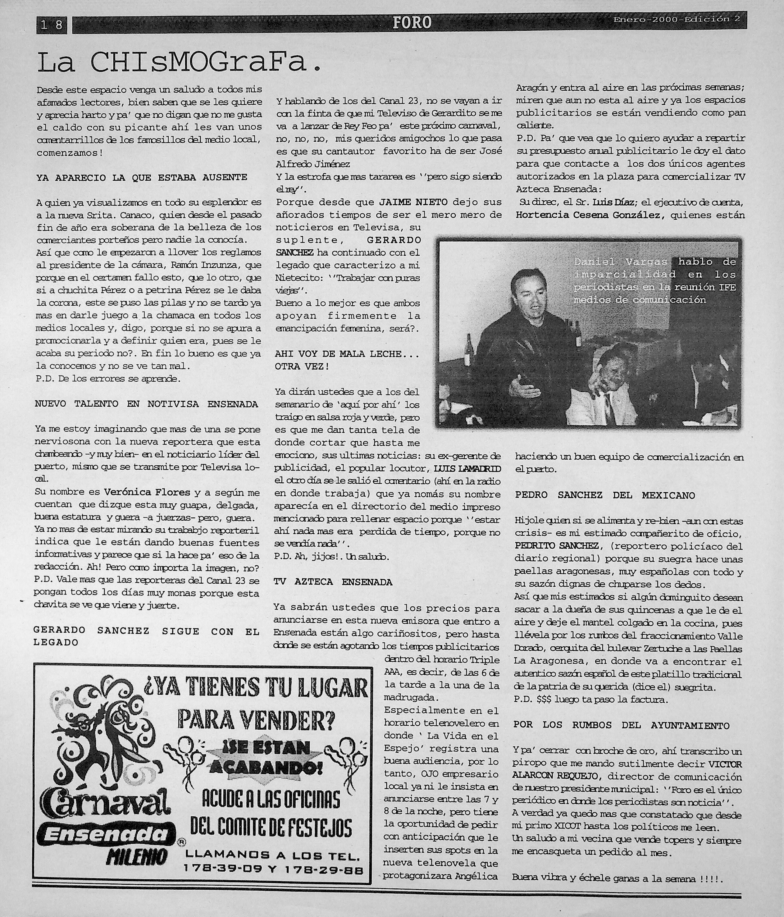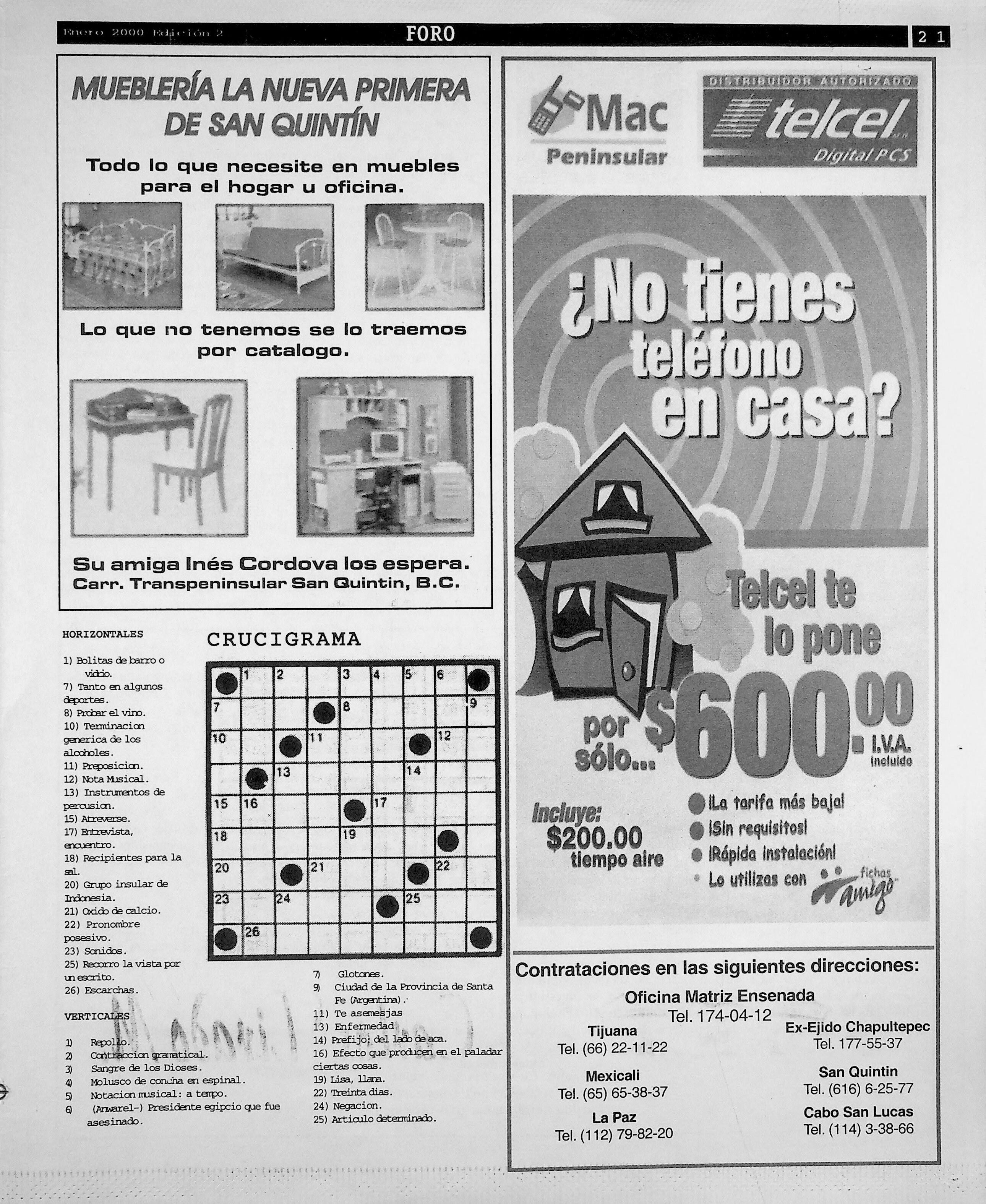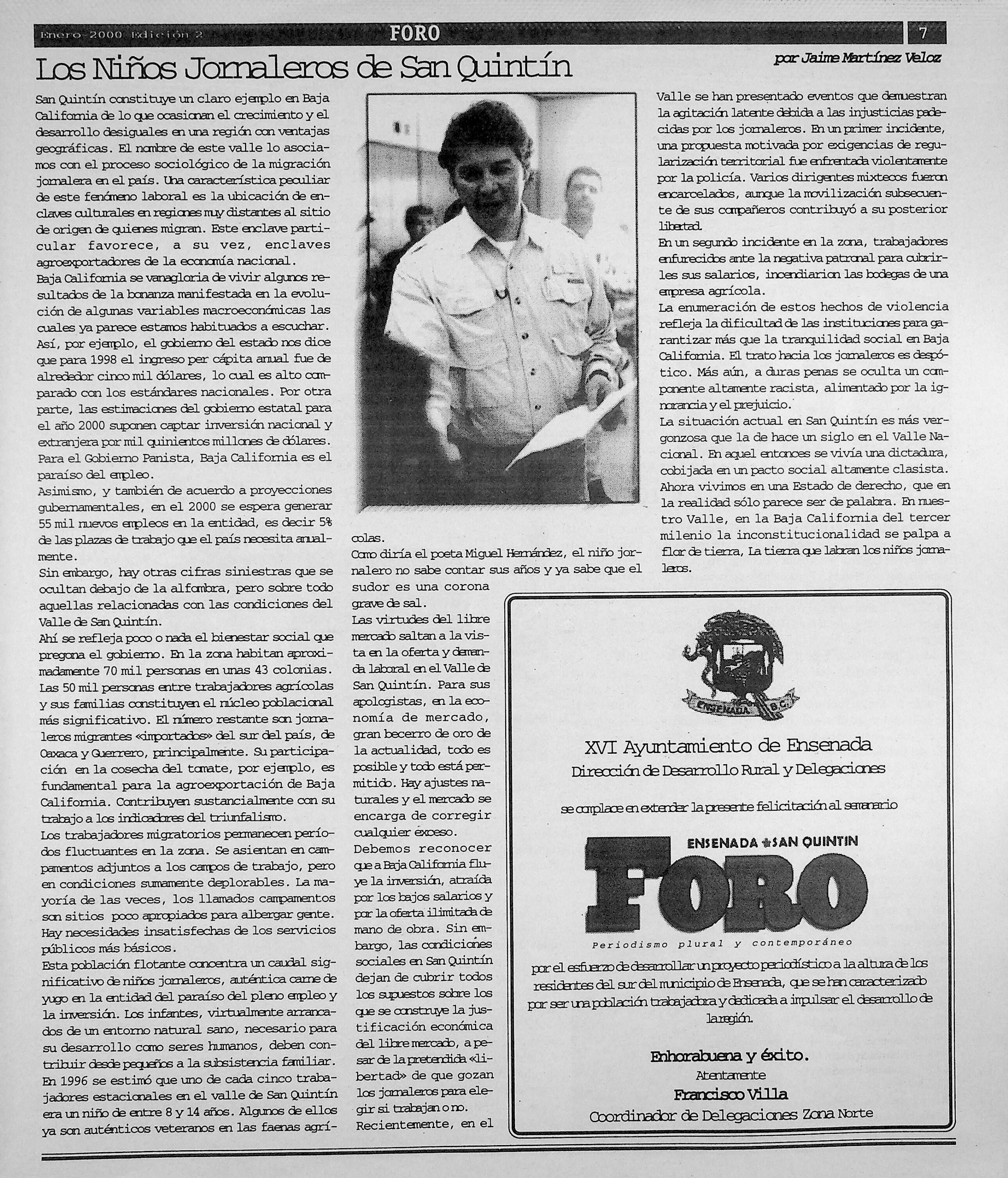 Foro-Semanario (Tijuana, Baja California, México), 2000, January 1. Periodicals in the US-Mexico Border Region. https://latinonewspapers.com/s/eng/item/36059.