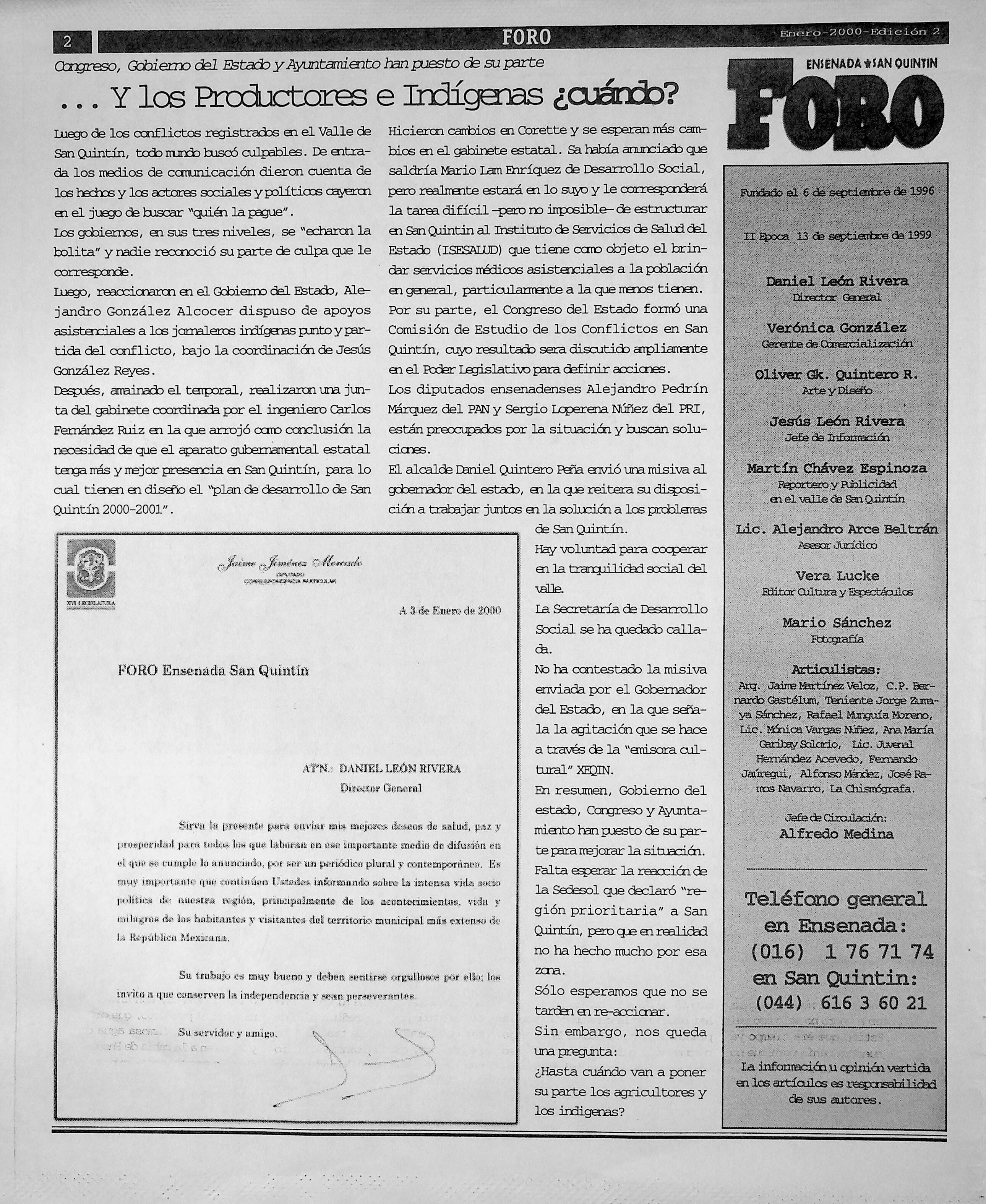 Foro, Edición 2, January 2000