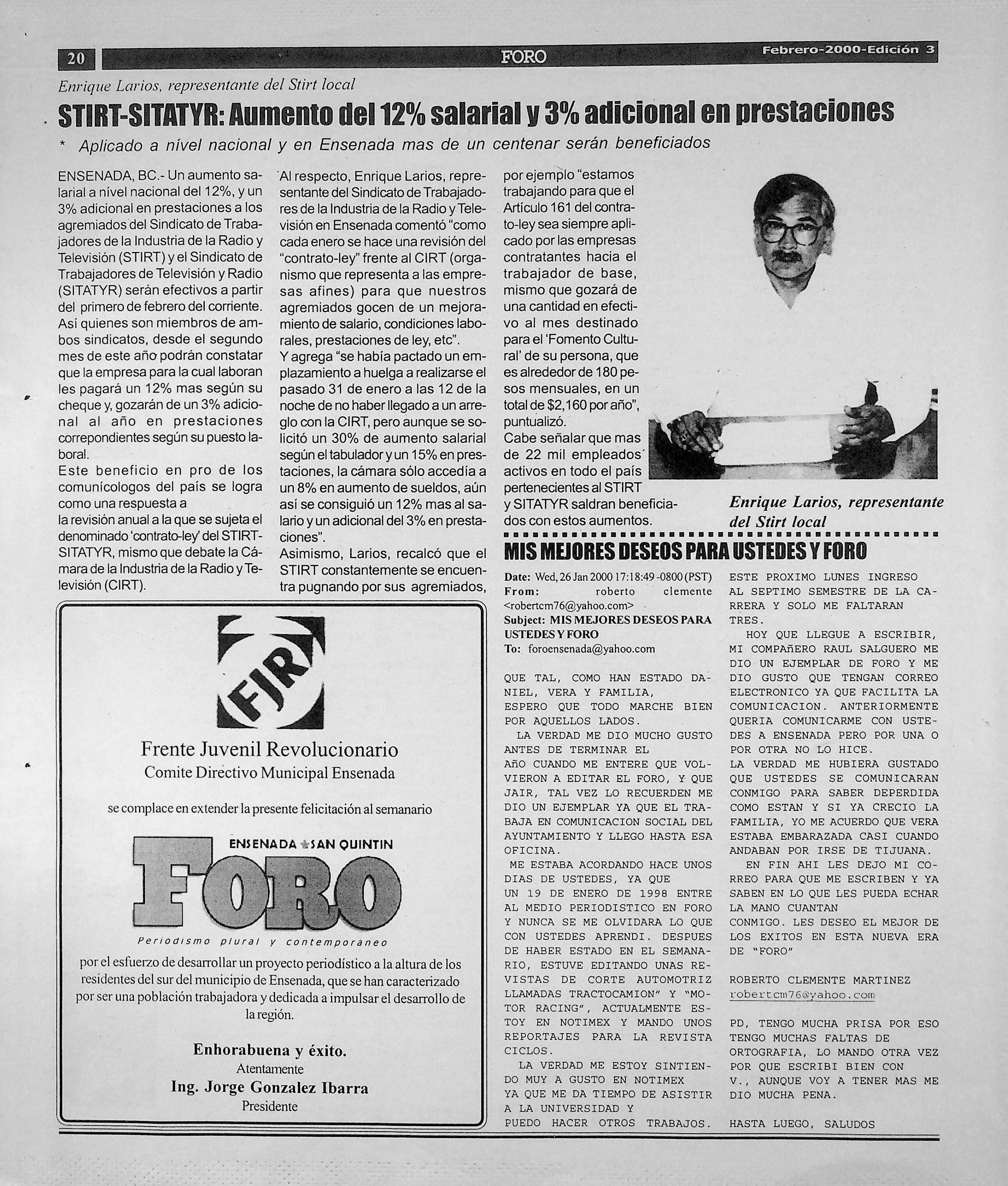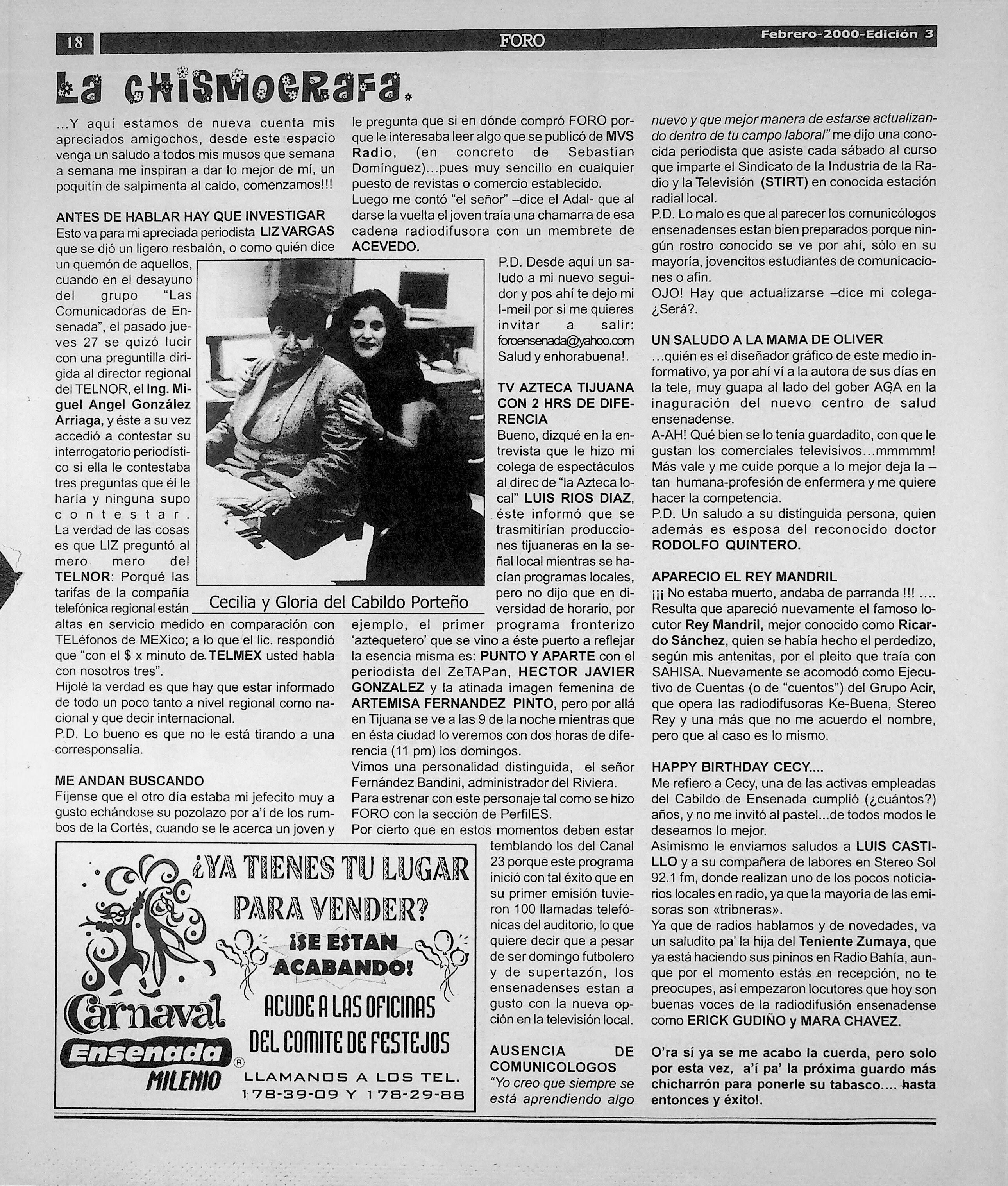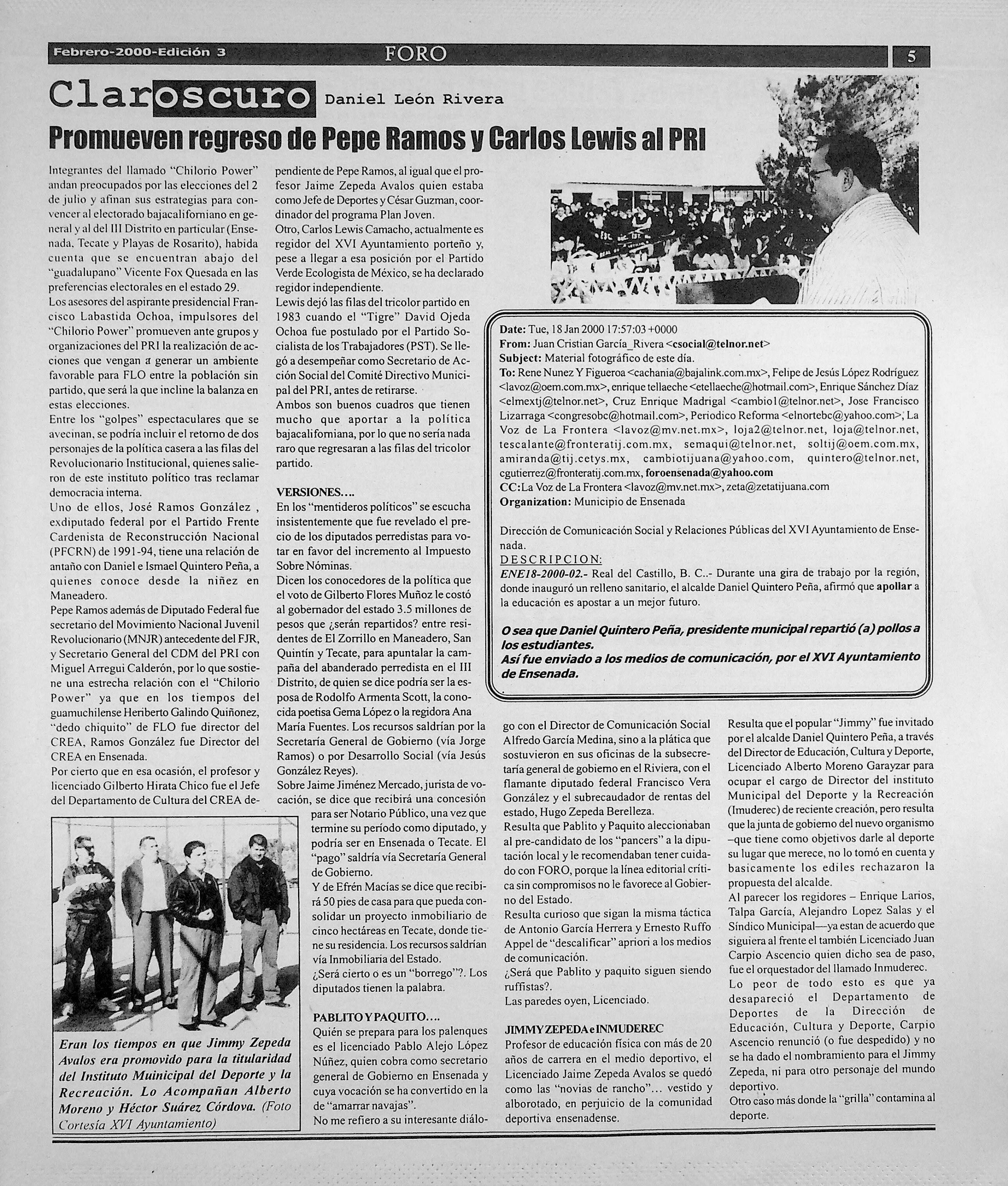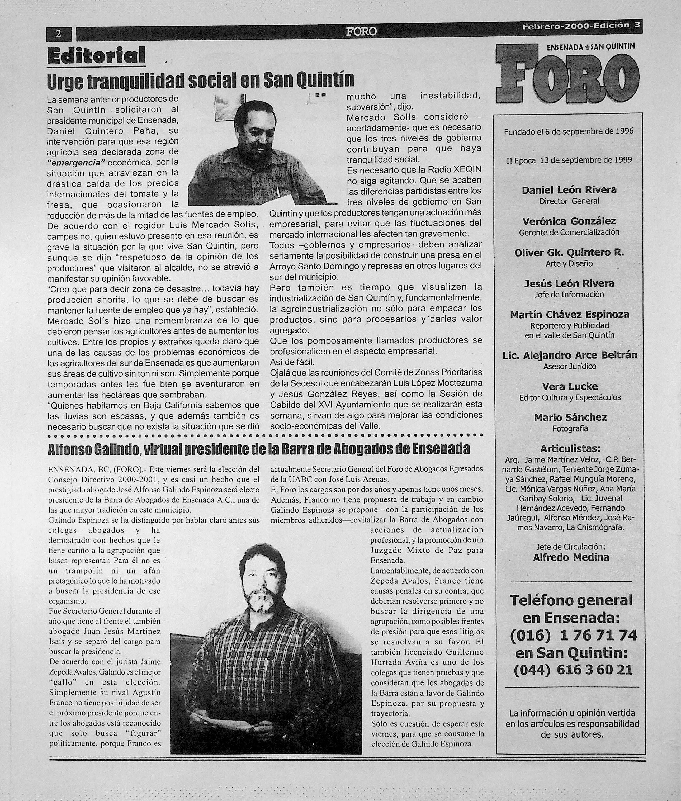 Foro-Semanario (Tijuana, Baja California, México), 2000, February 1. Periodicals in the US-Mexico Border Region. https://latinonewspapers.com/s/eng/item/36060.