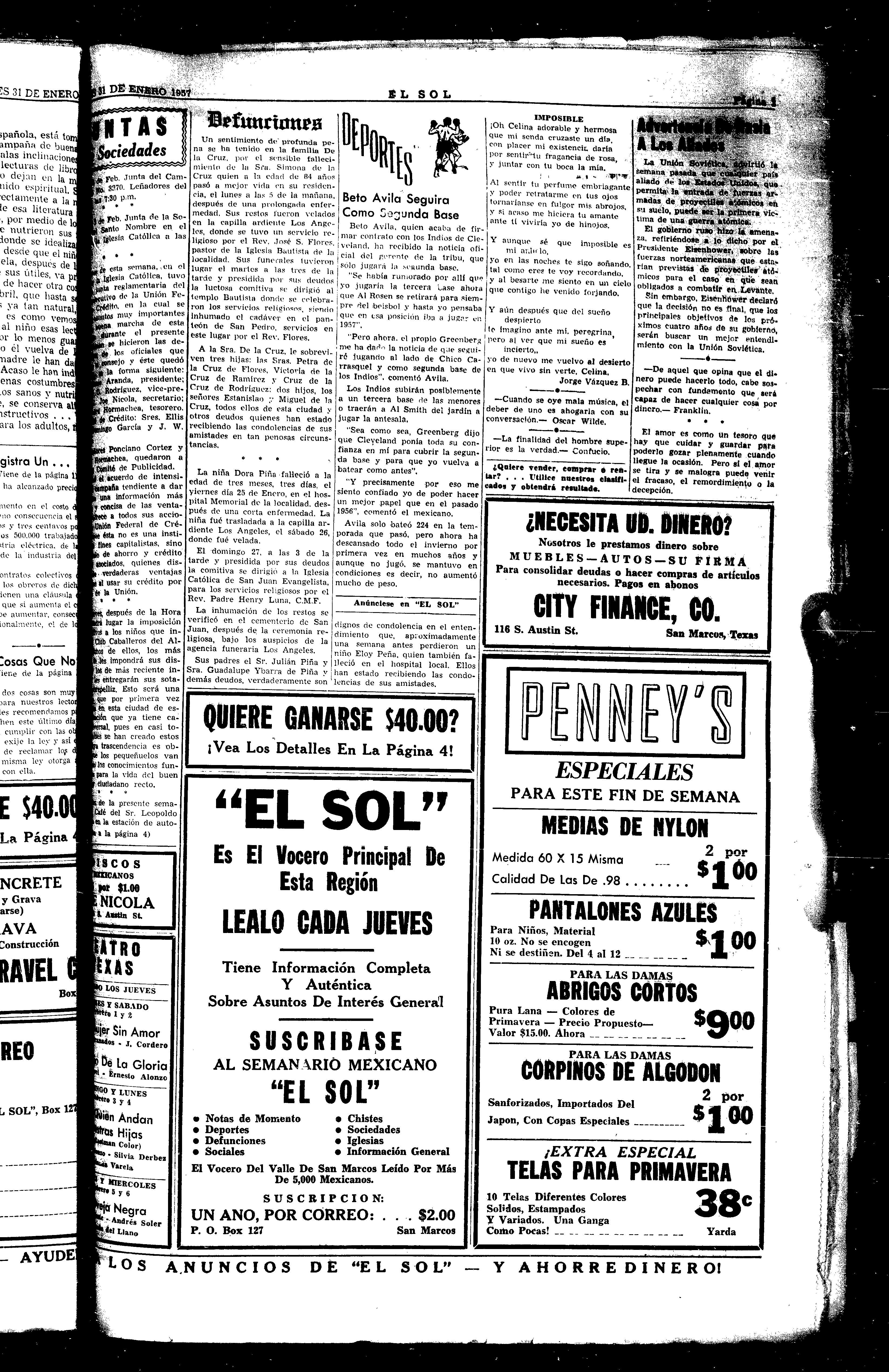 (1957, January 31). El Sol. Available from Periodicals in the US-Mexico Border Region: https://latinonewspapers.com/s/eng/item/5586.
