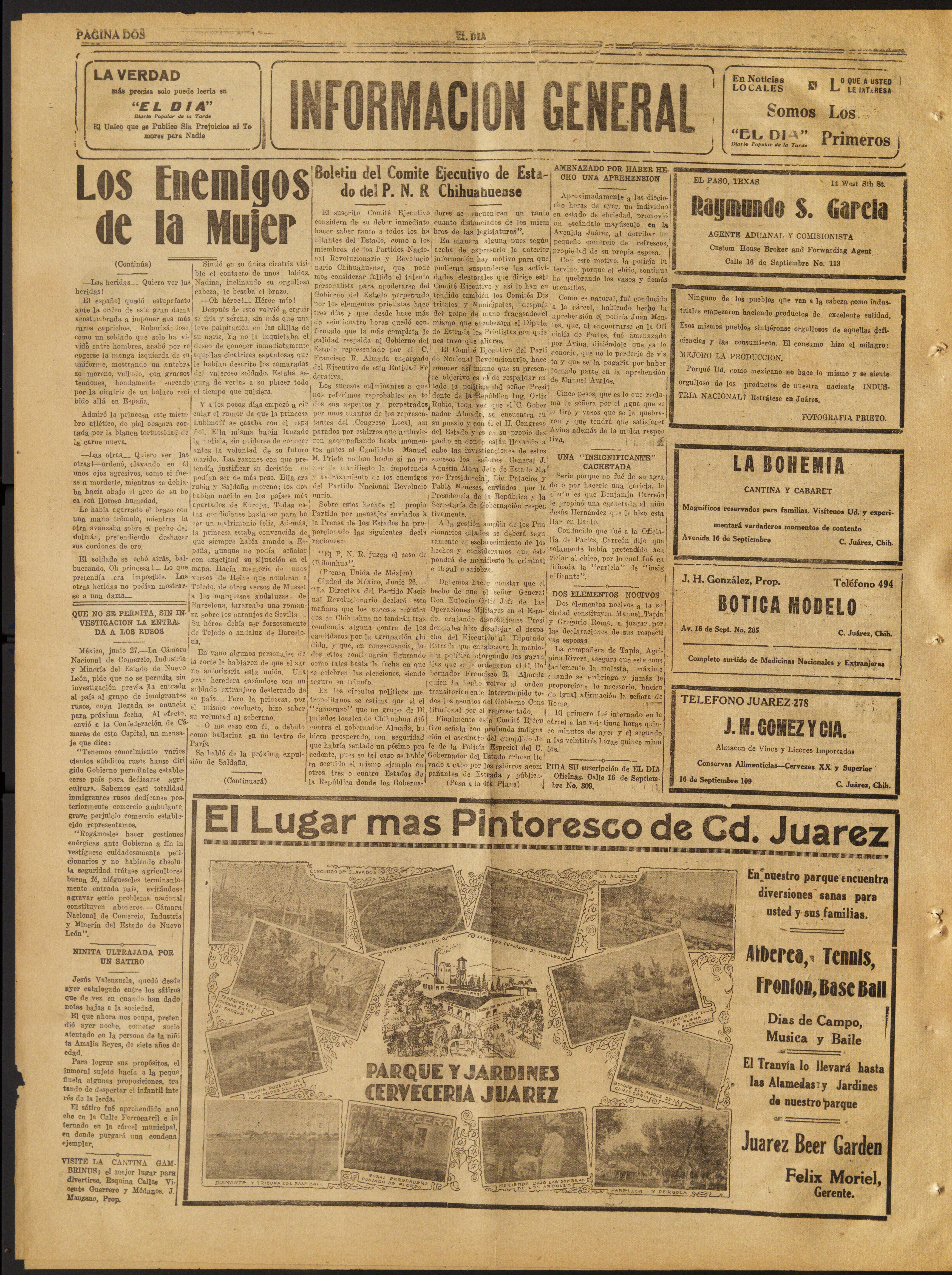 El Dia (Ciudad Juarez, Chihuahua, México), 1930, June 30. Periodicals in the US-Mexico Border Region. https://latinonewspapers.com/s/eng/item/56141.