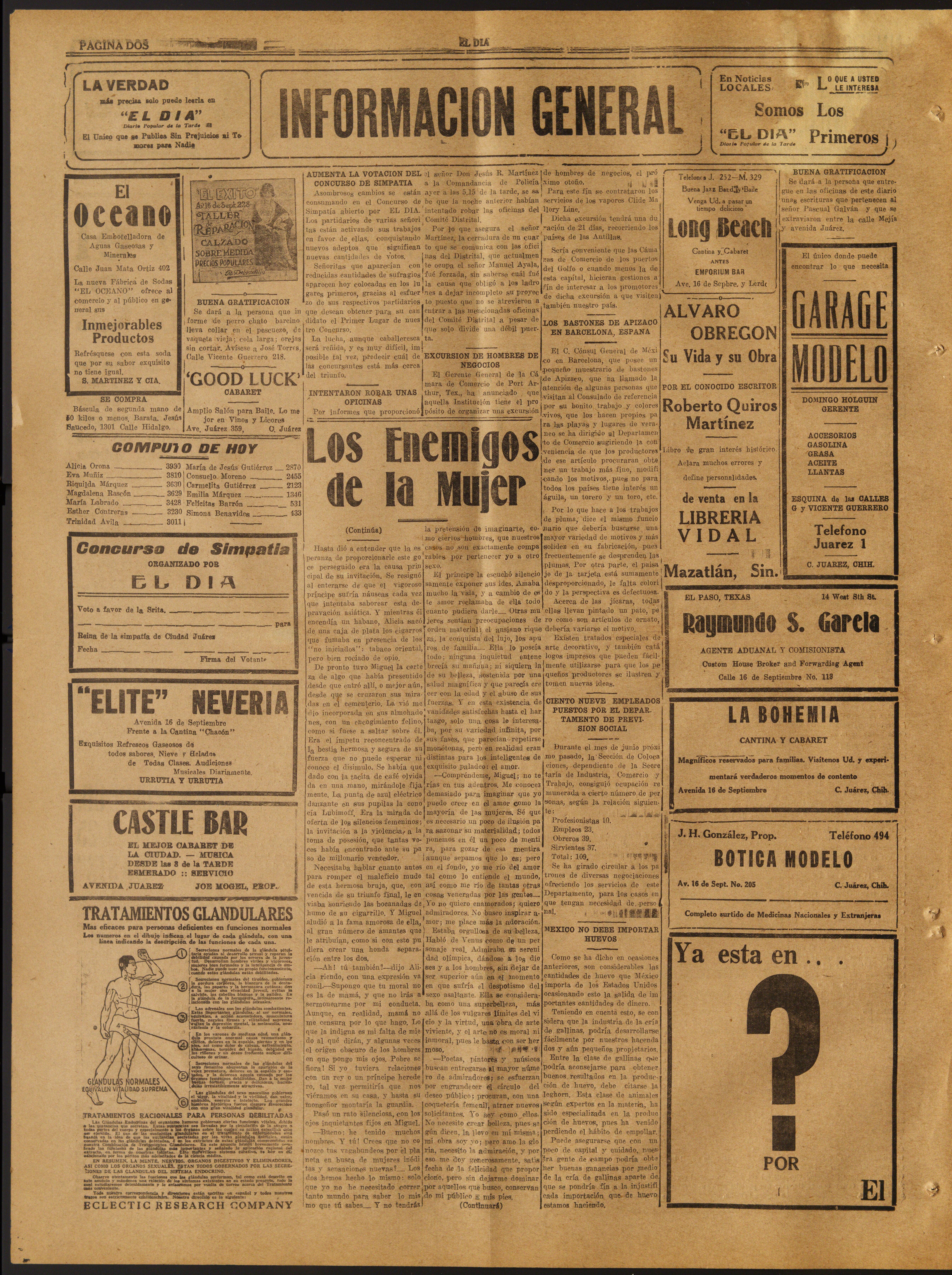 El Dia (Ciudad Juarez, Chihuahua, México), 1930, July 23. Periodicals in the US-Mexico Border Region. https://latinonewspapers.com/s/eng/item/56162.