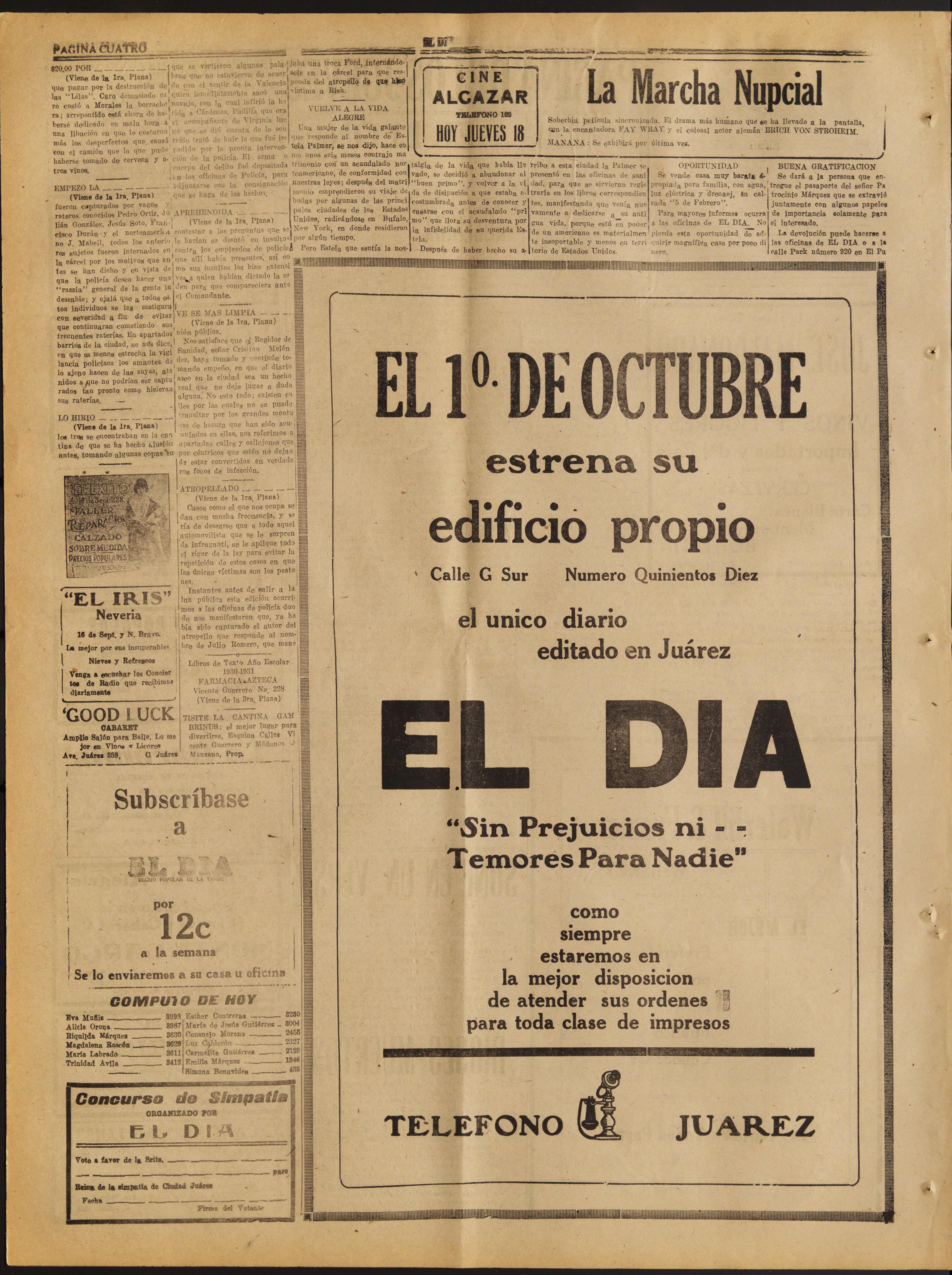 (1930, September 18). El Dia. Available from Periodicals in the US-Mexico Border Region: https://latinonewspapers.com/s/eng/item/56199.