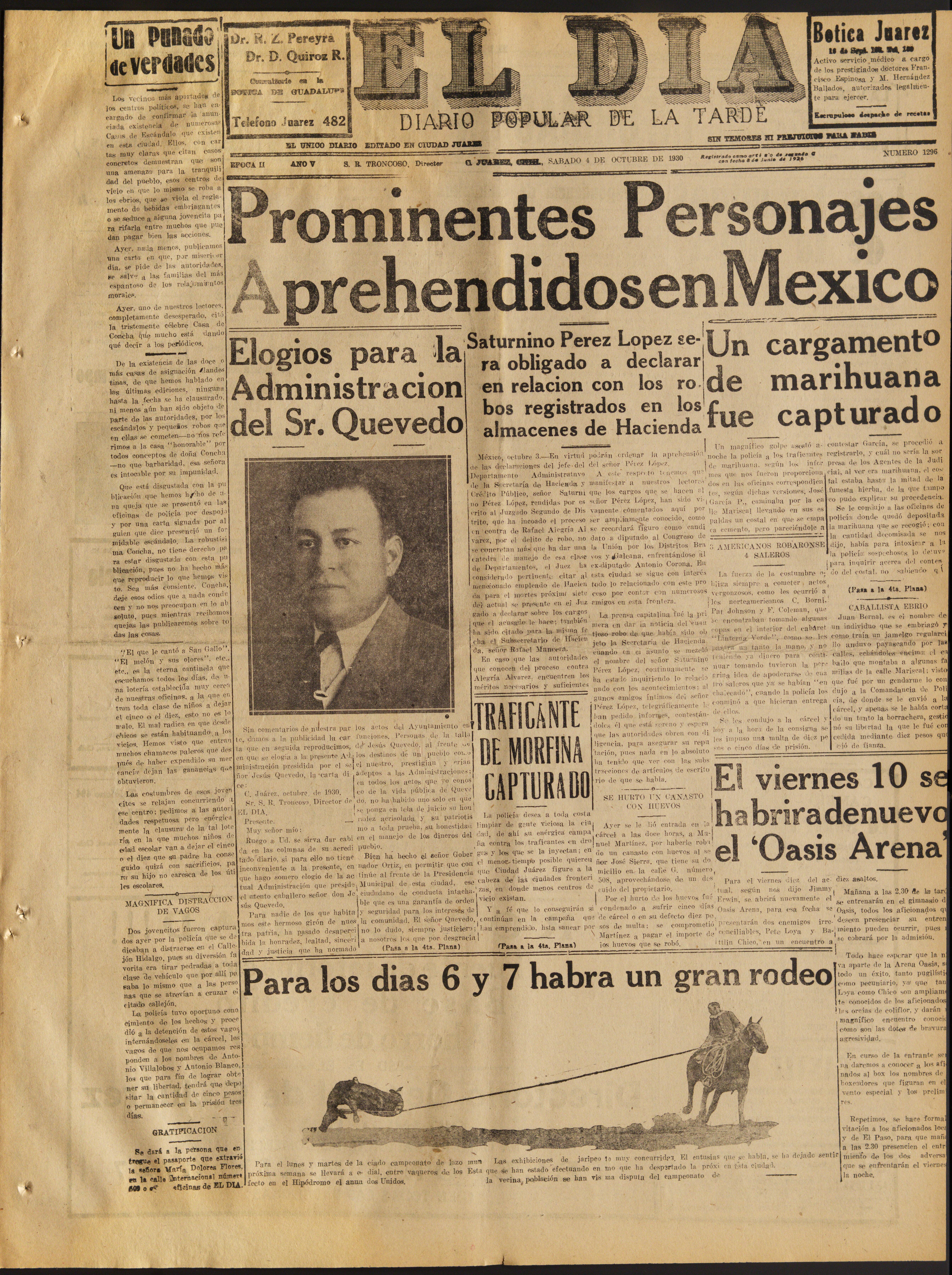 El Dia (Ciudad Juarez, Chihuahua, México), 1930, October 4. Periodicals in the US-Mexico Border Region. https://latinonewspapers.com/s/eng/item/56210.