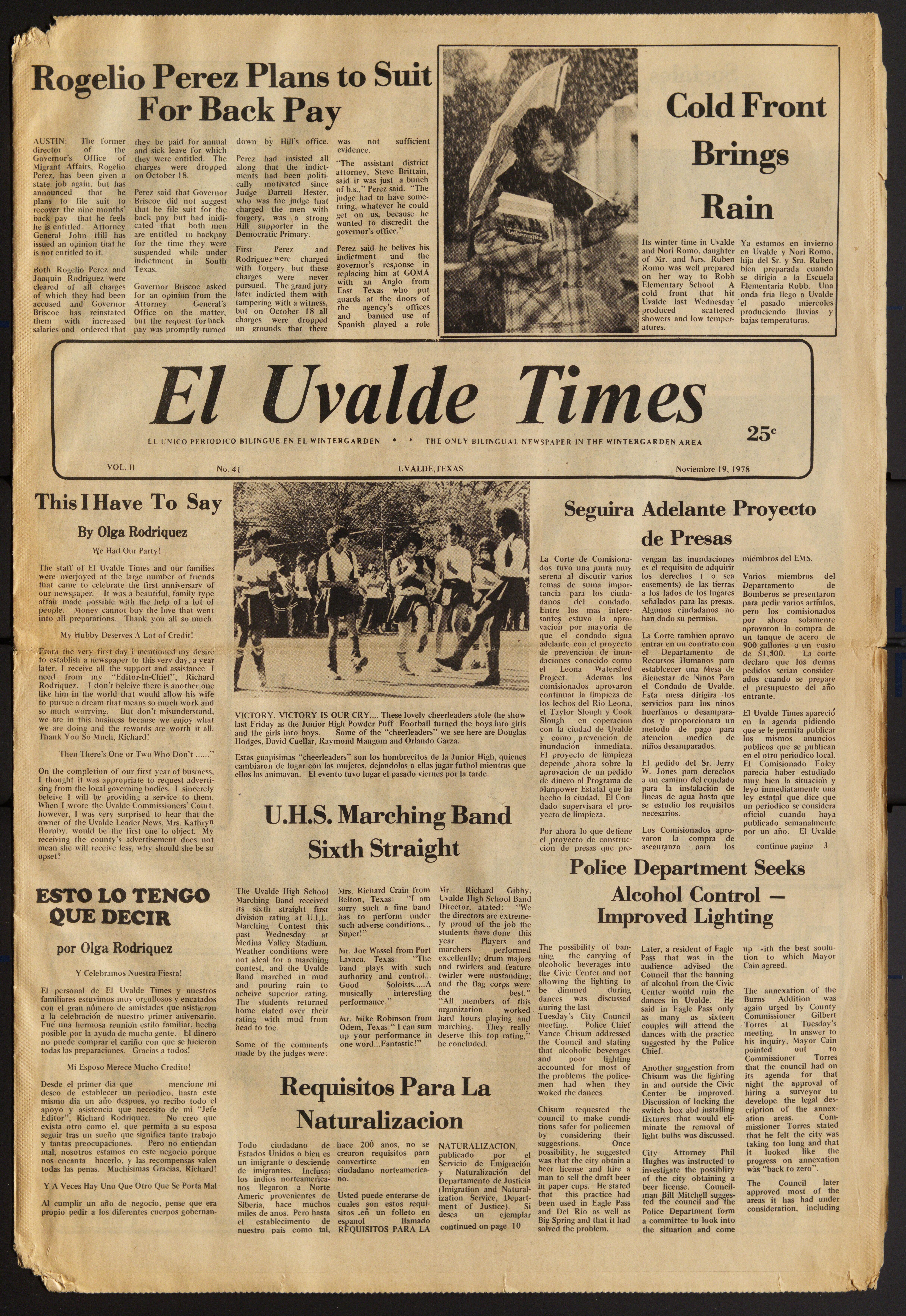El Uvalde Times, 1978, November 19. Periodicals in the US-Mexico Border Region, https://latinonewspapers.com/s/eng/item/60161. Accessed 2 November 2025.
