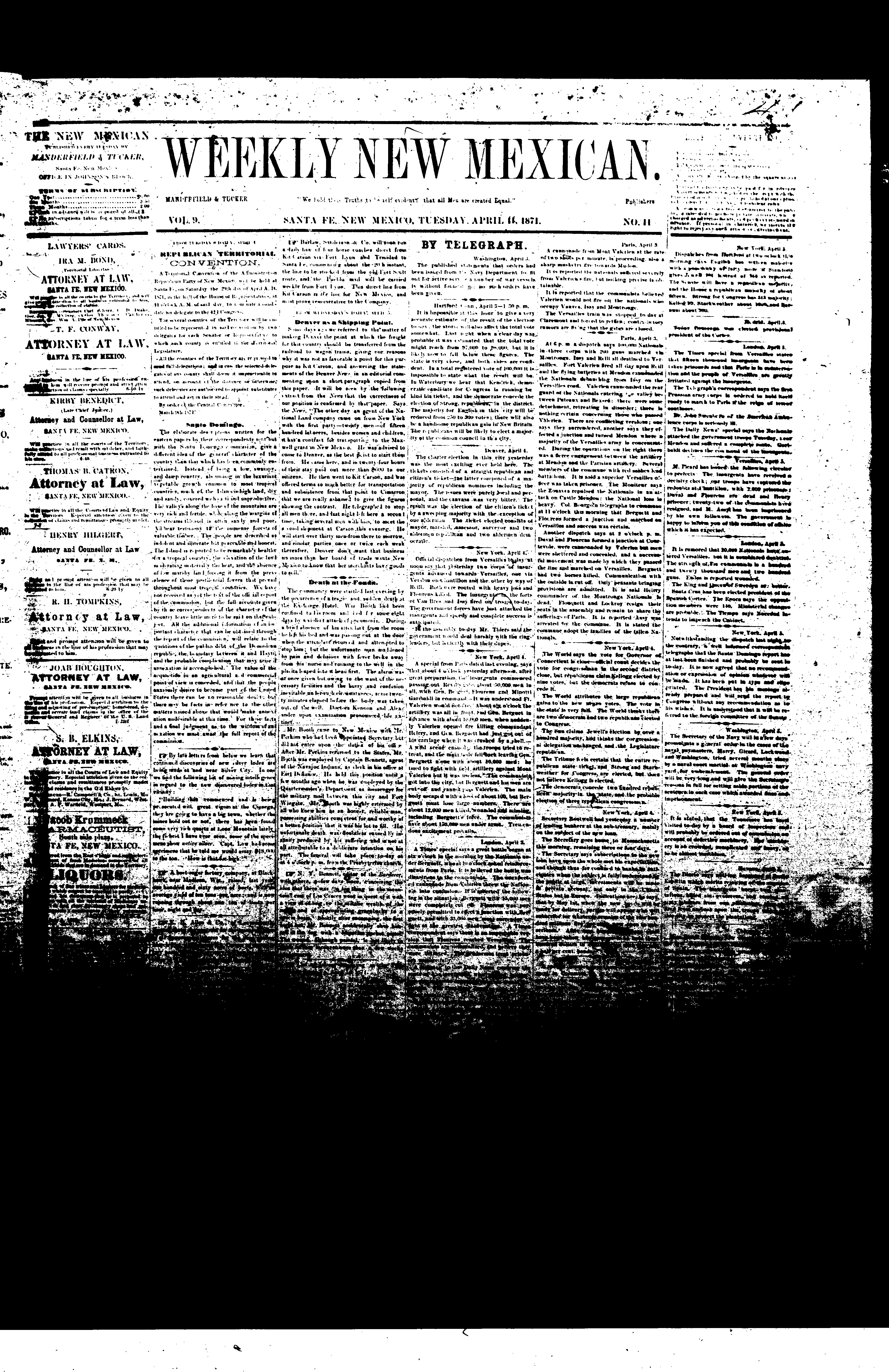 (1871, April 11). Weekly New Mexican. Available from Periodicals in the US-Mexico Border Region: https://latinonewspapers.com/s/eng/item/7267.