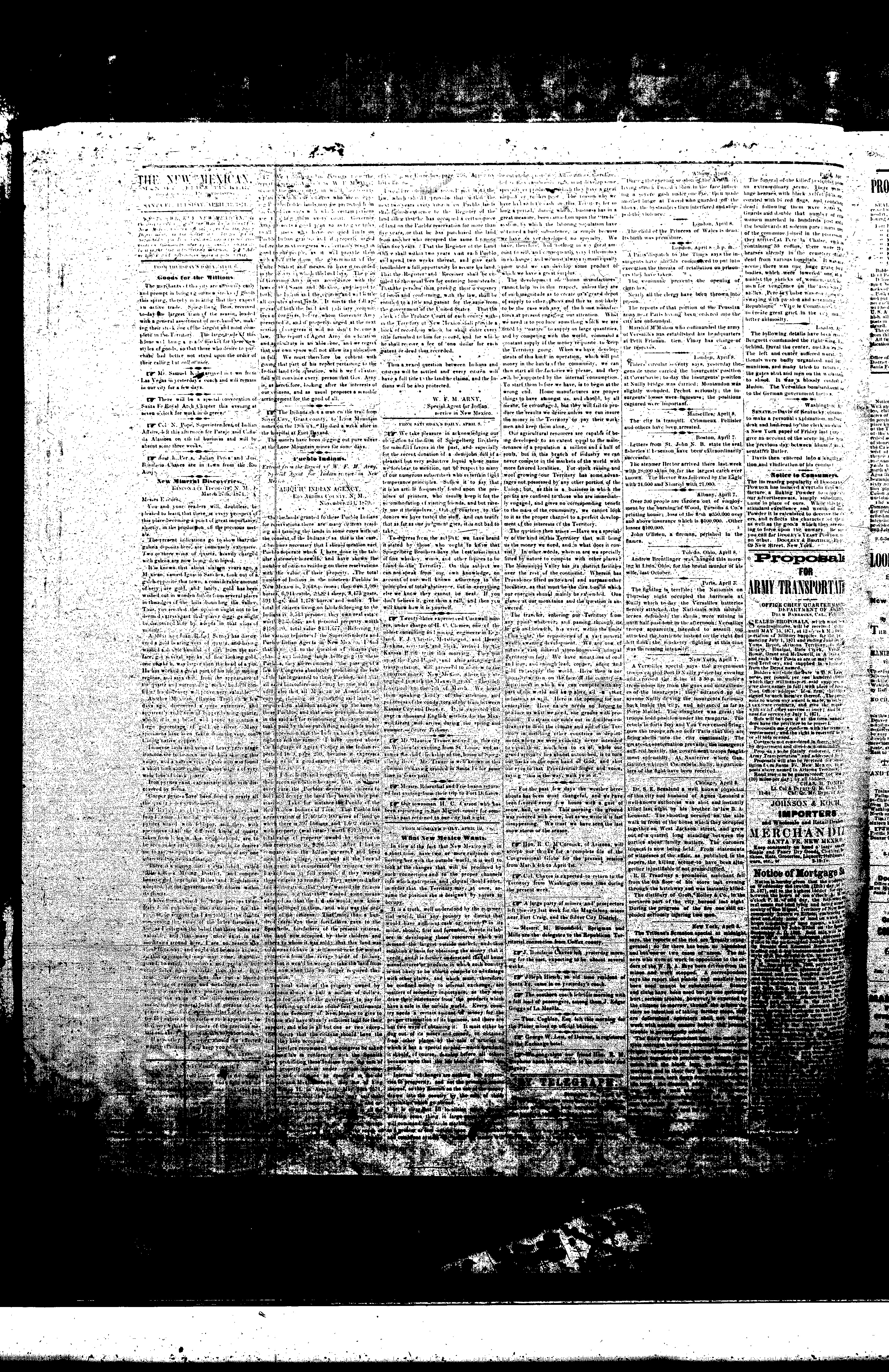 Weekly New Mexican (Santa Fe, New Mexico, United States), 1871, April 11. Periodicals in the US-Mexico Border Region. https://latinonewspapers.com/s/eng/item/7267.