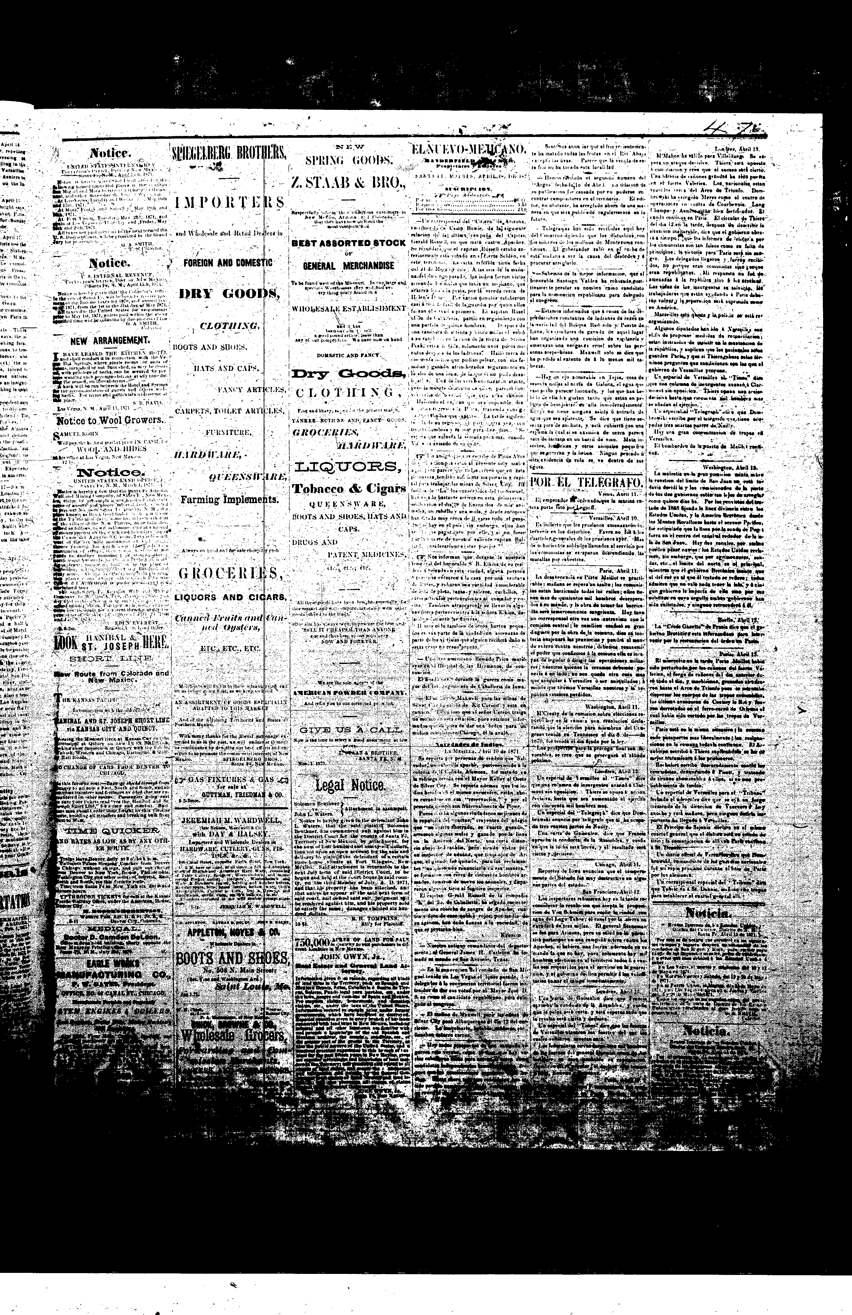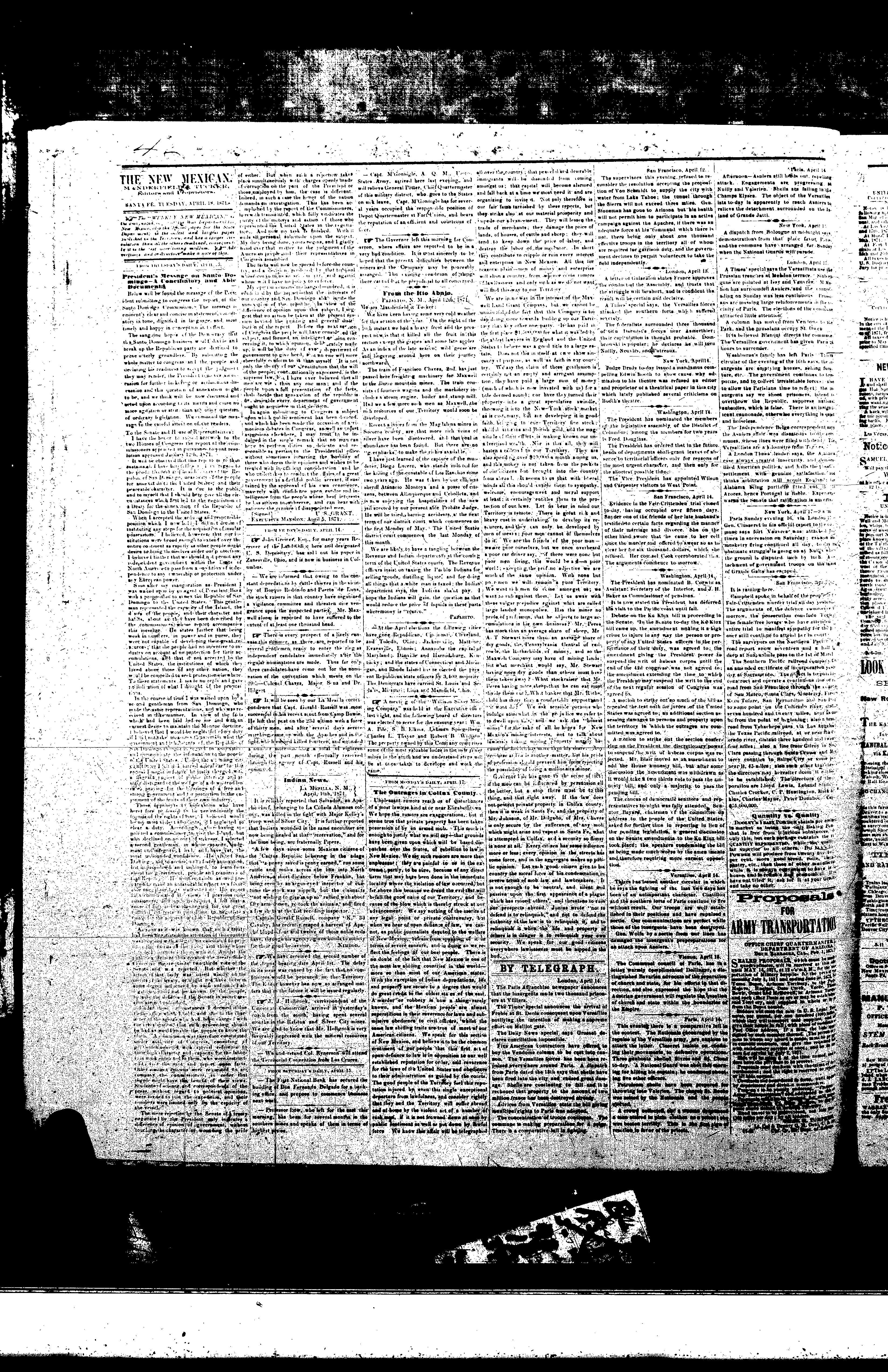 Weekly New Mexican (Santa Fe, New Mexico, United States), 1871, April 18. Periodicals in the US-Mexico Border Region. https://latinonewspapers.com/s/eng/item/7280.