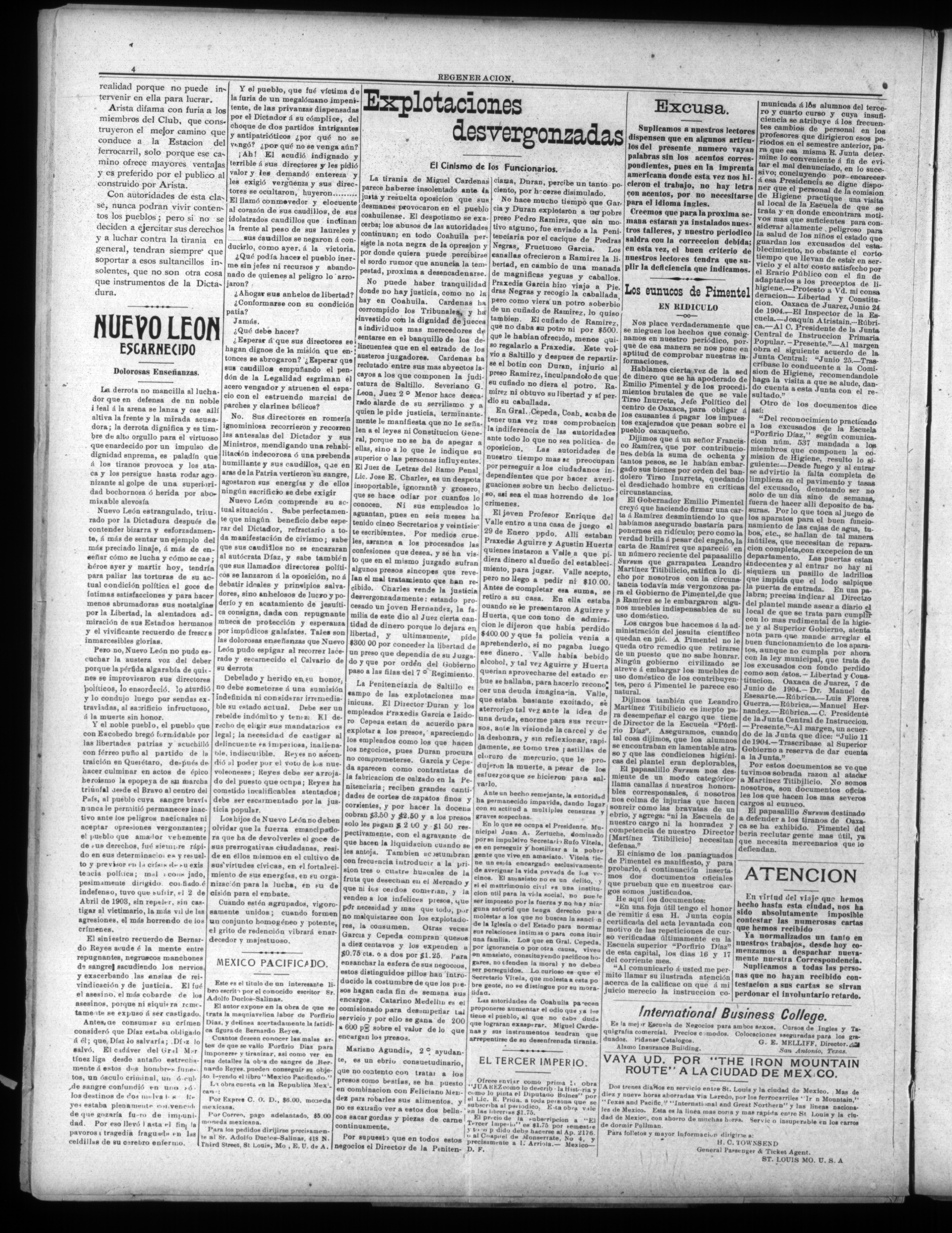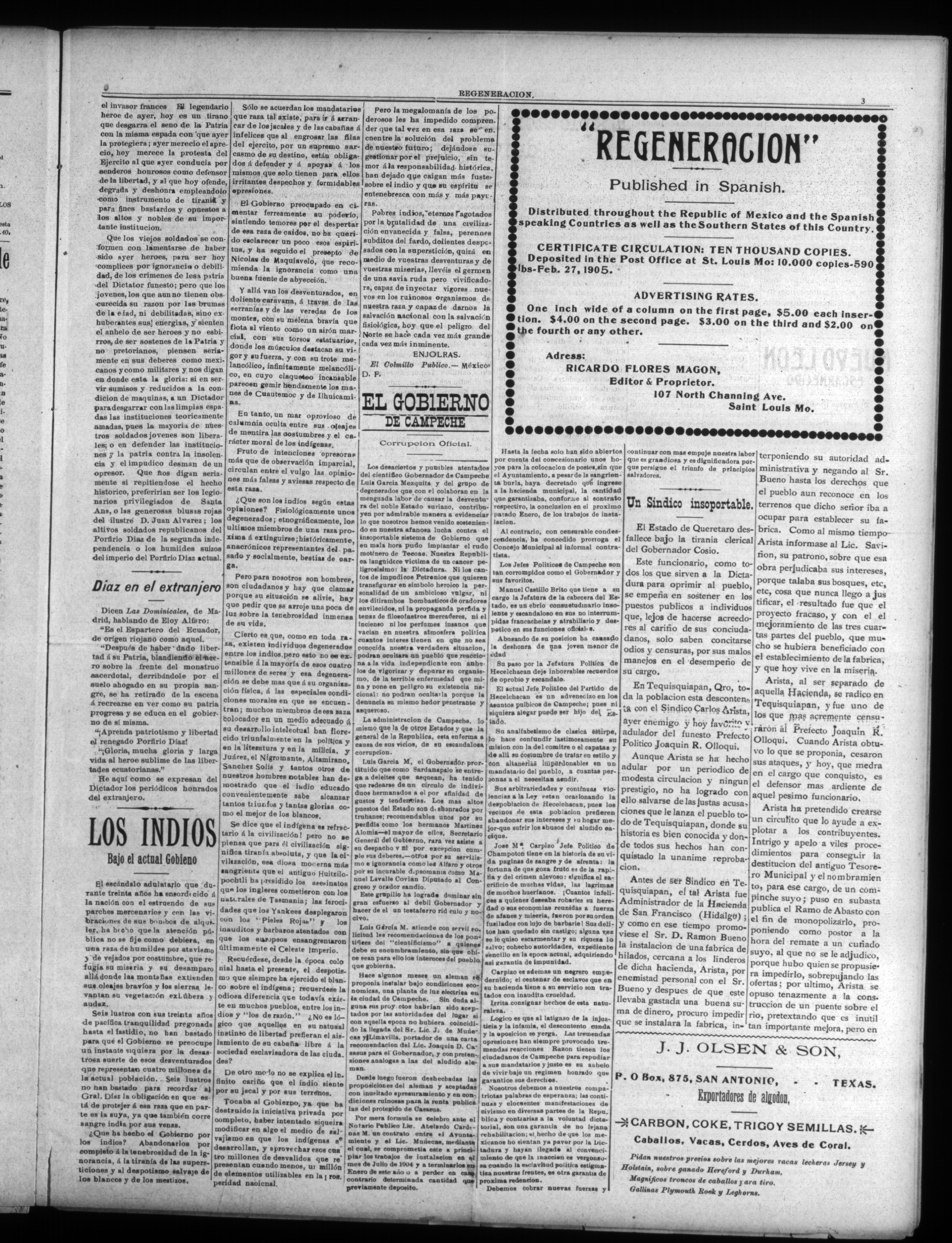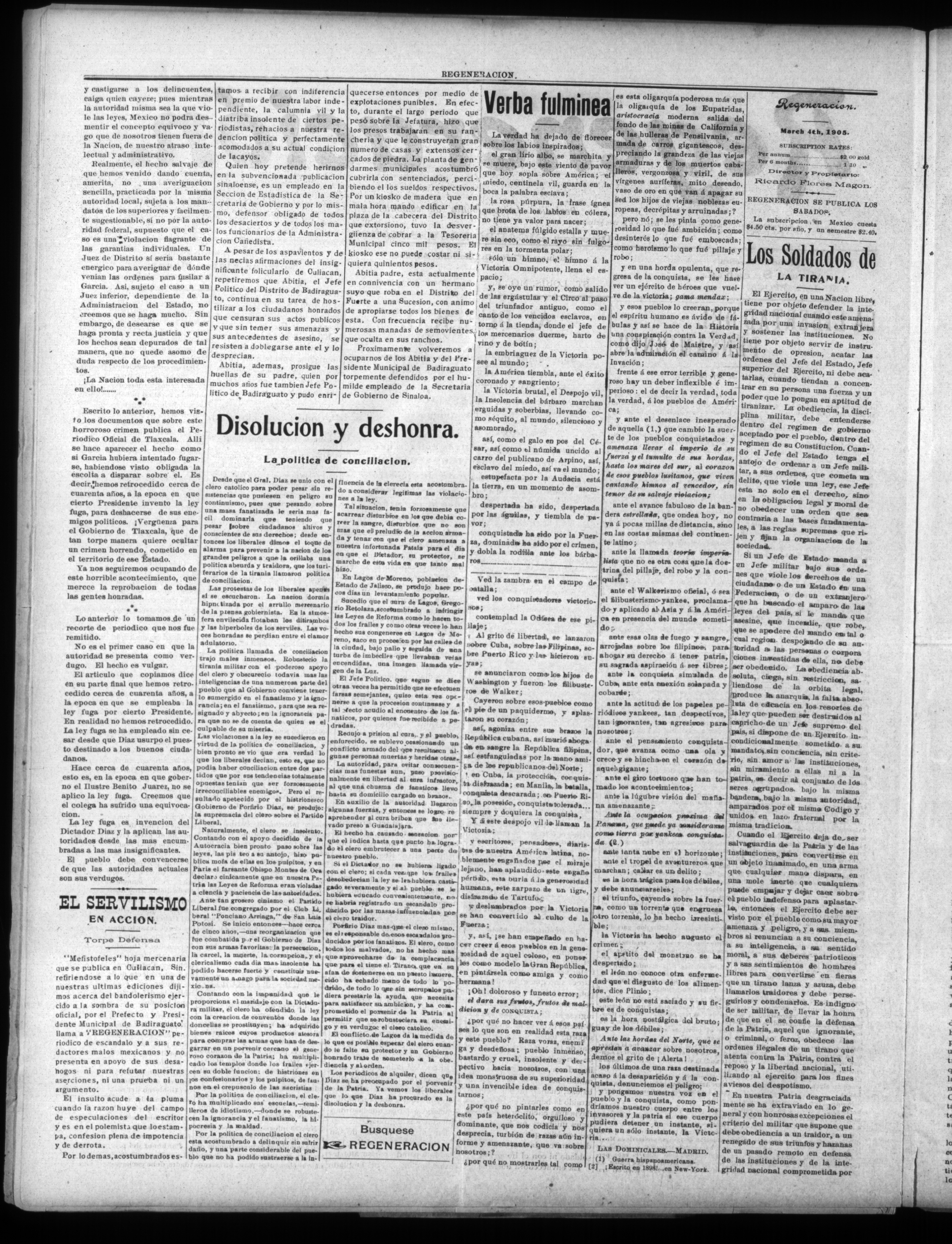 (1905, March 4). Regeneración. Available from Periodicals in the US-Mexico Border Region: https://latinonewspapers.com/s/eng/item/76398.