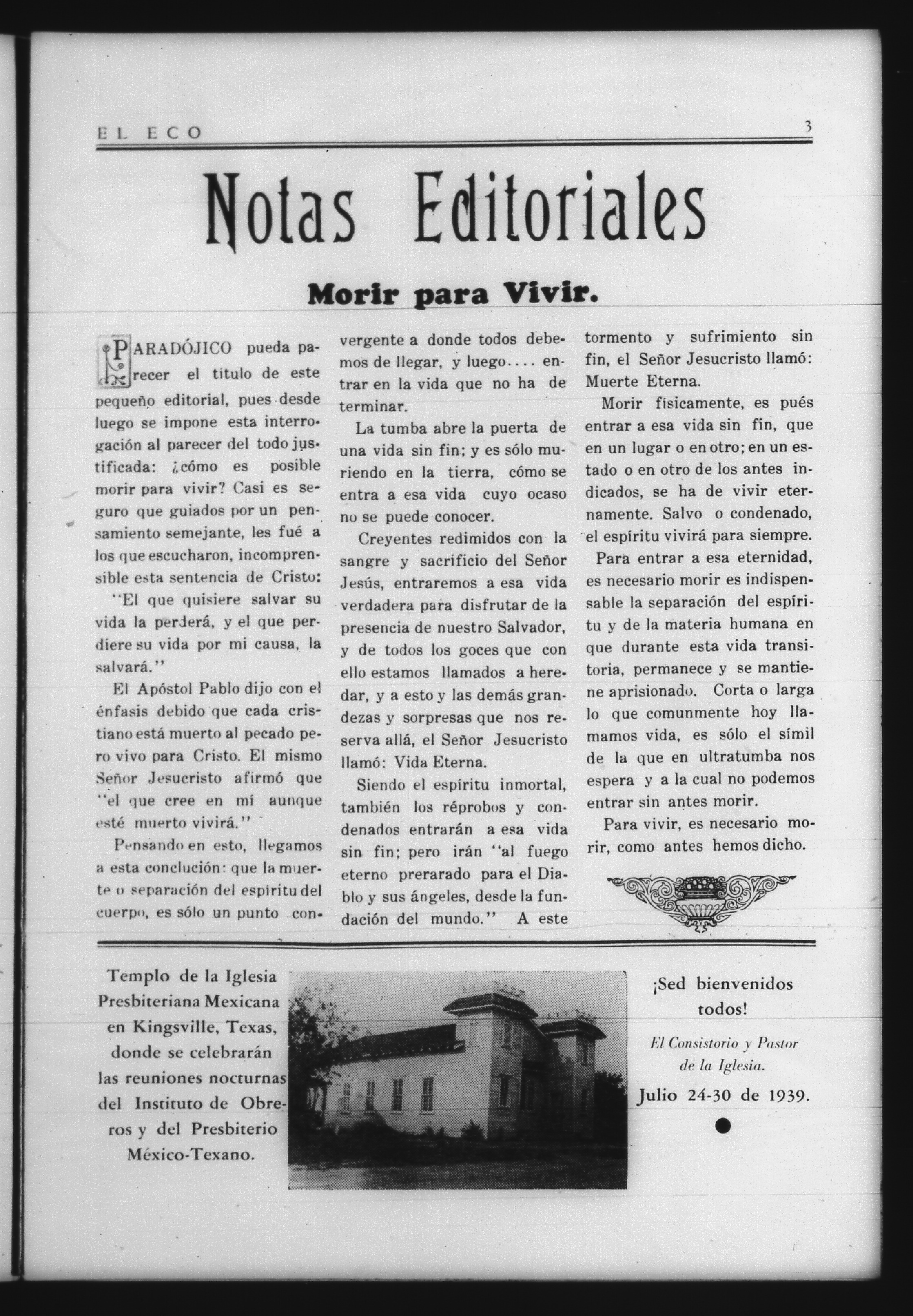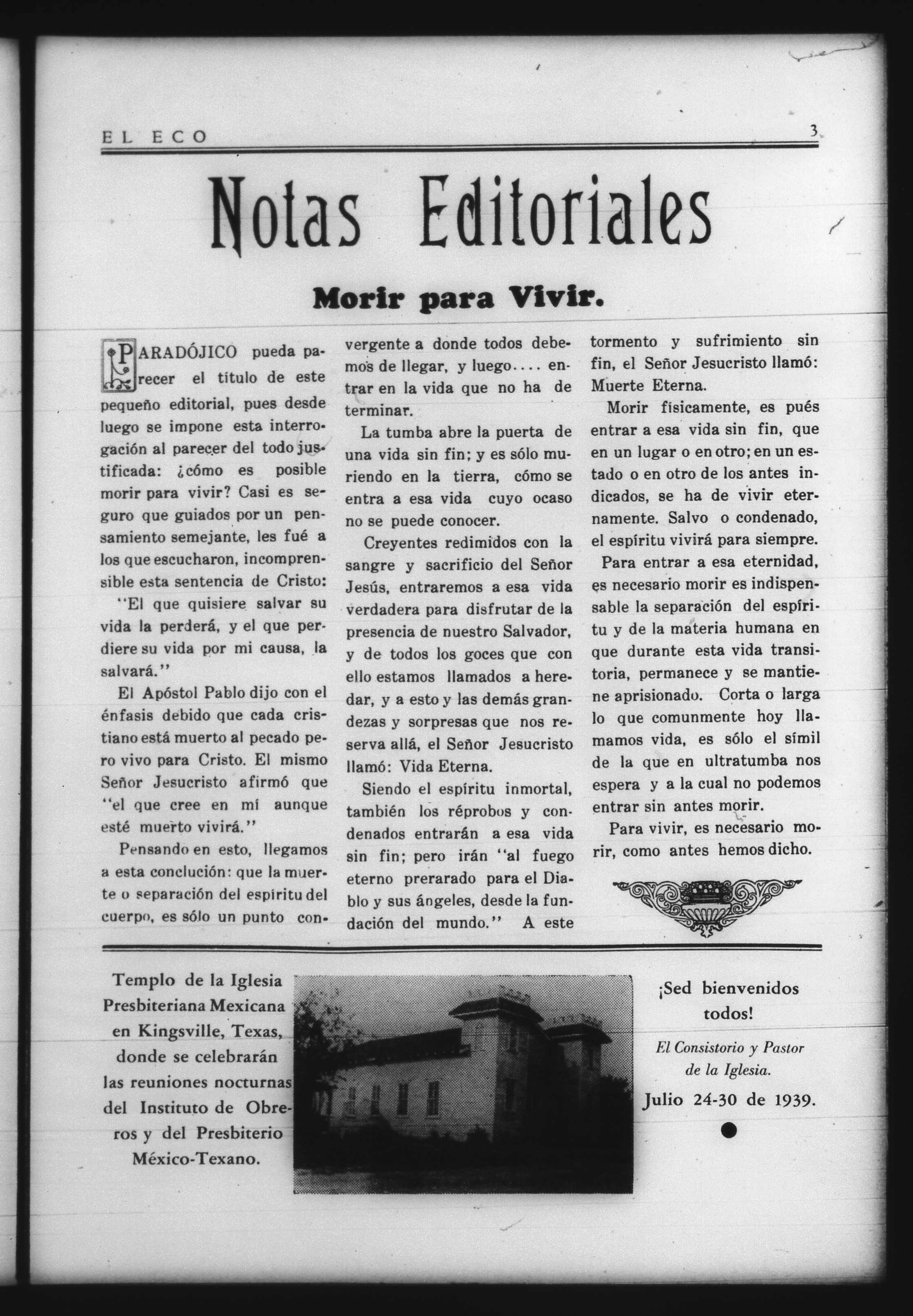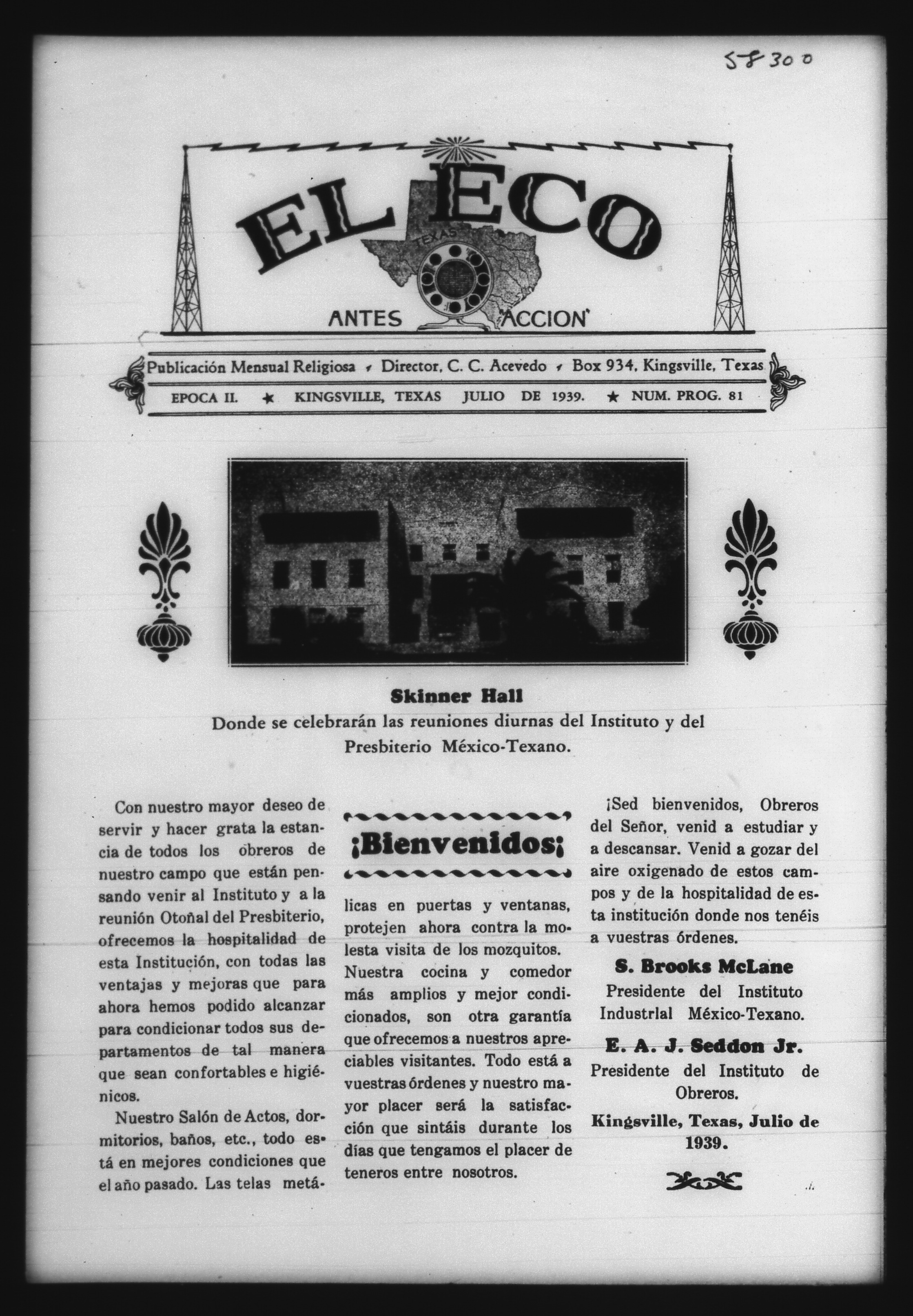El Eco (Kingsville, Texas, United States), 1939, July 1. Periodicals in the US-Mexico Border Region. https://latinonewspapers.com/s/eng/item/81598.