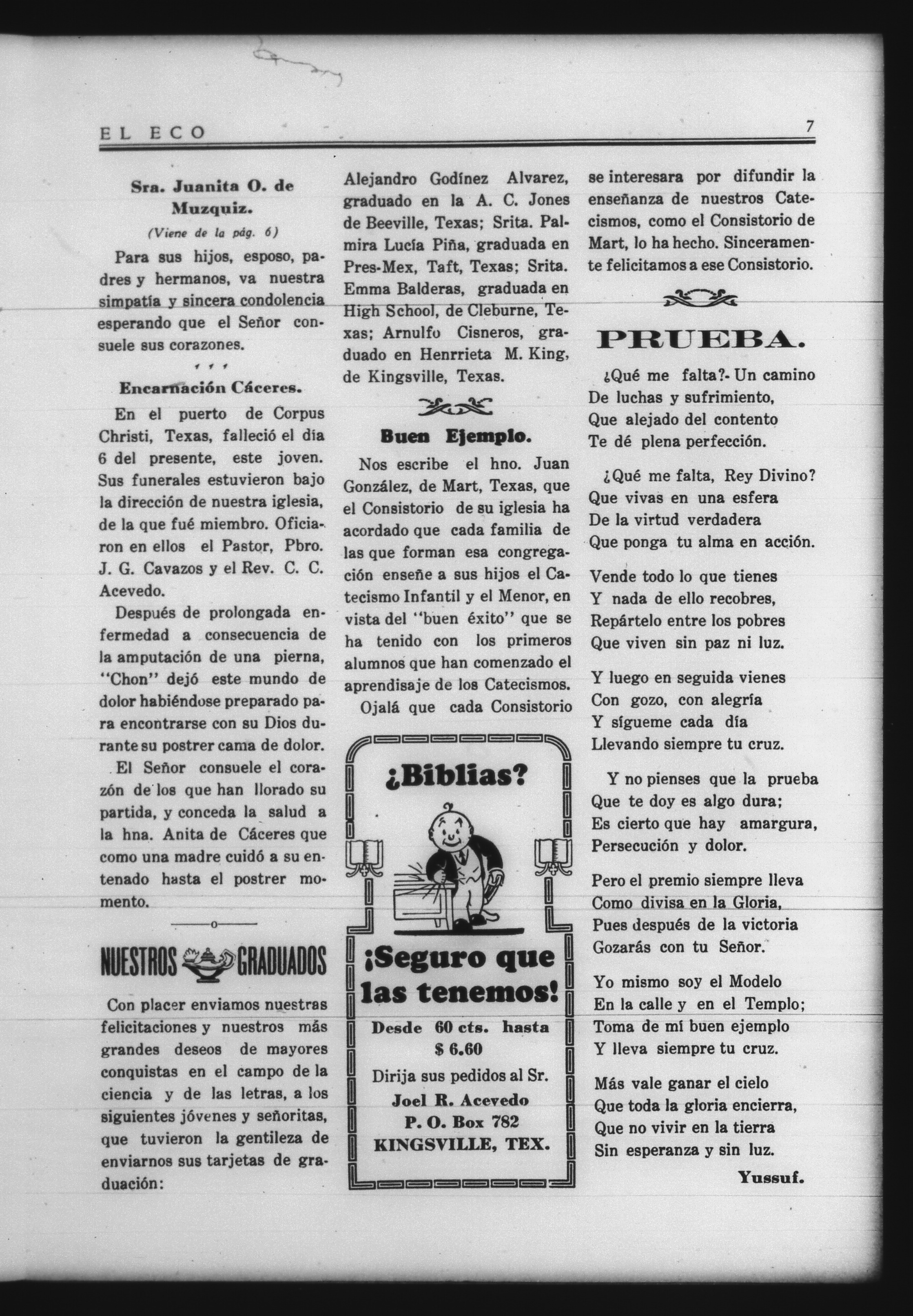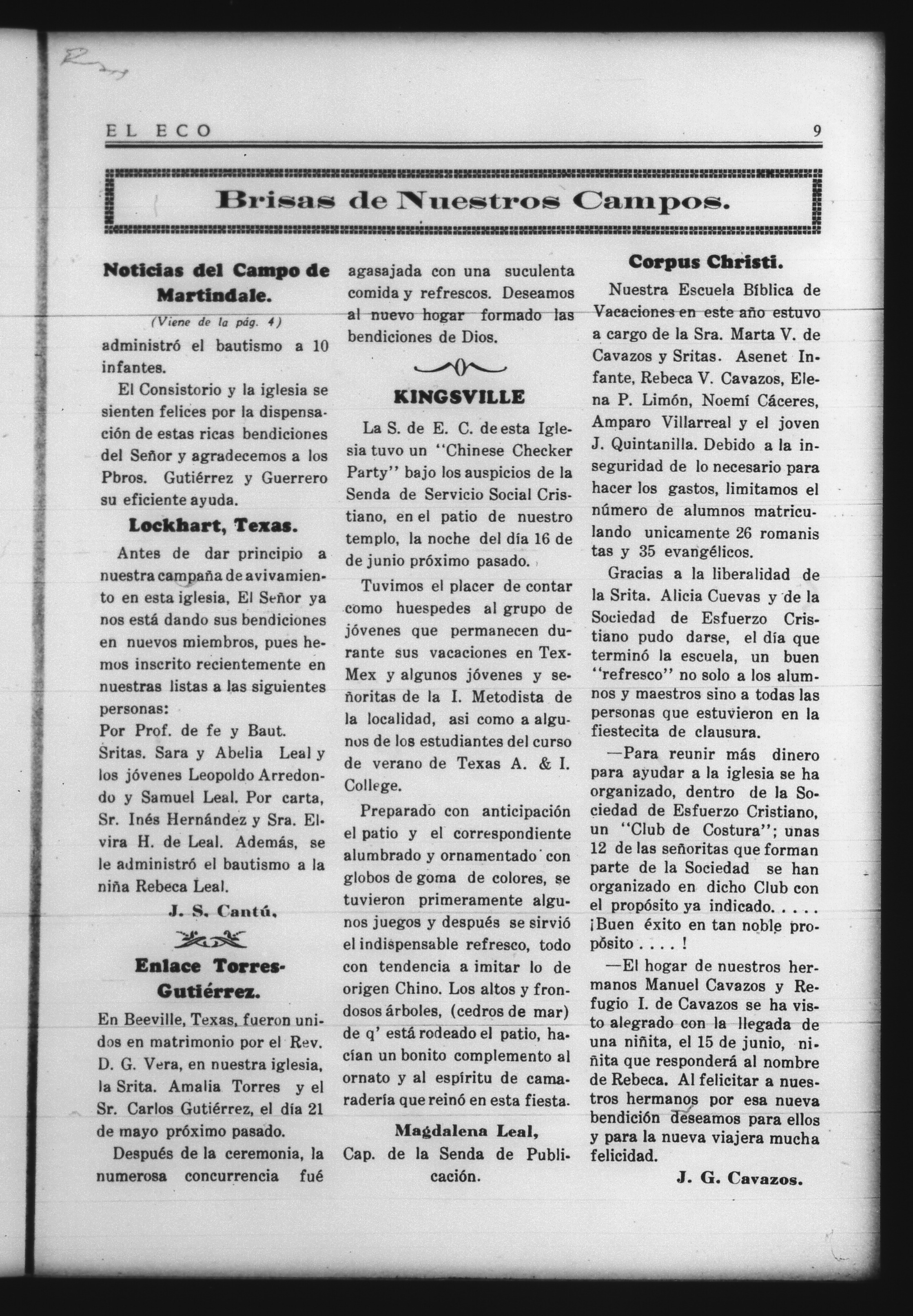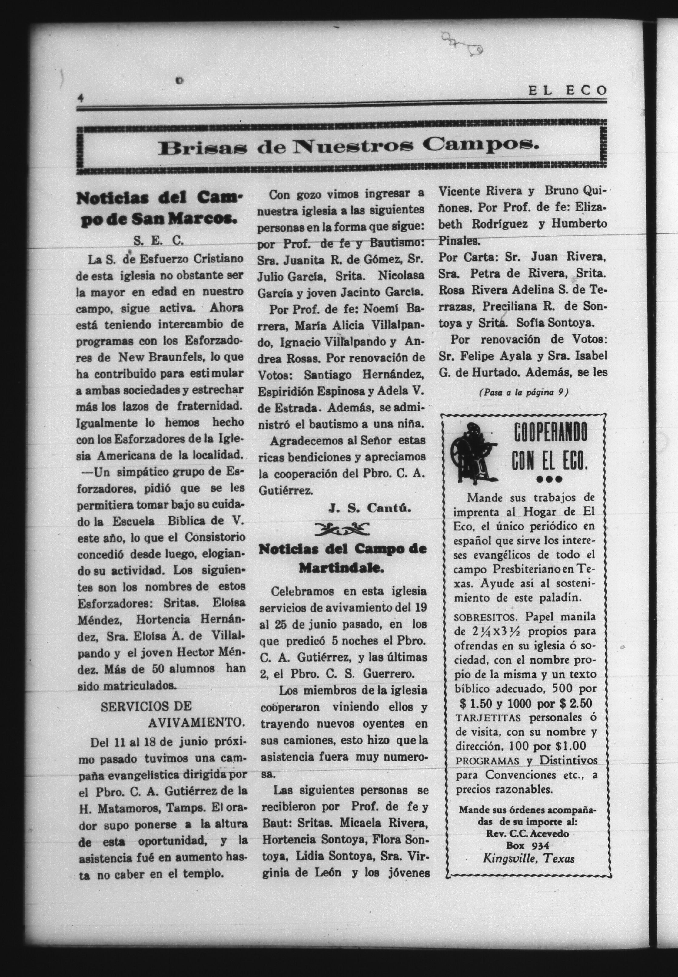 El Eco (Kingsville, Texas, United States), 1939, July 1. Periodicals in the US-Mexico Border Region. https://latinonewspapers.com/s/eng/item/81598.