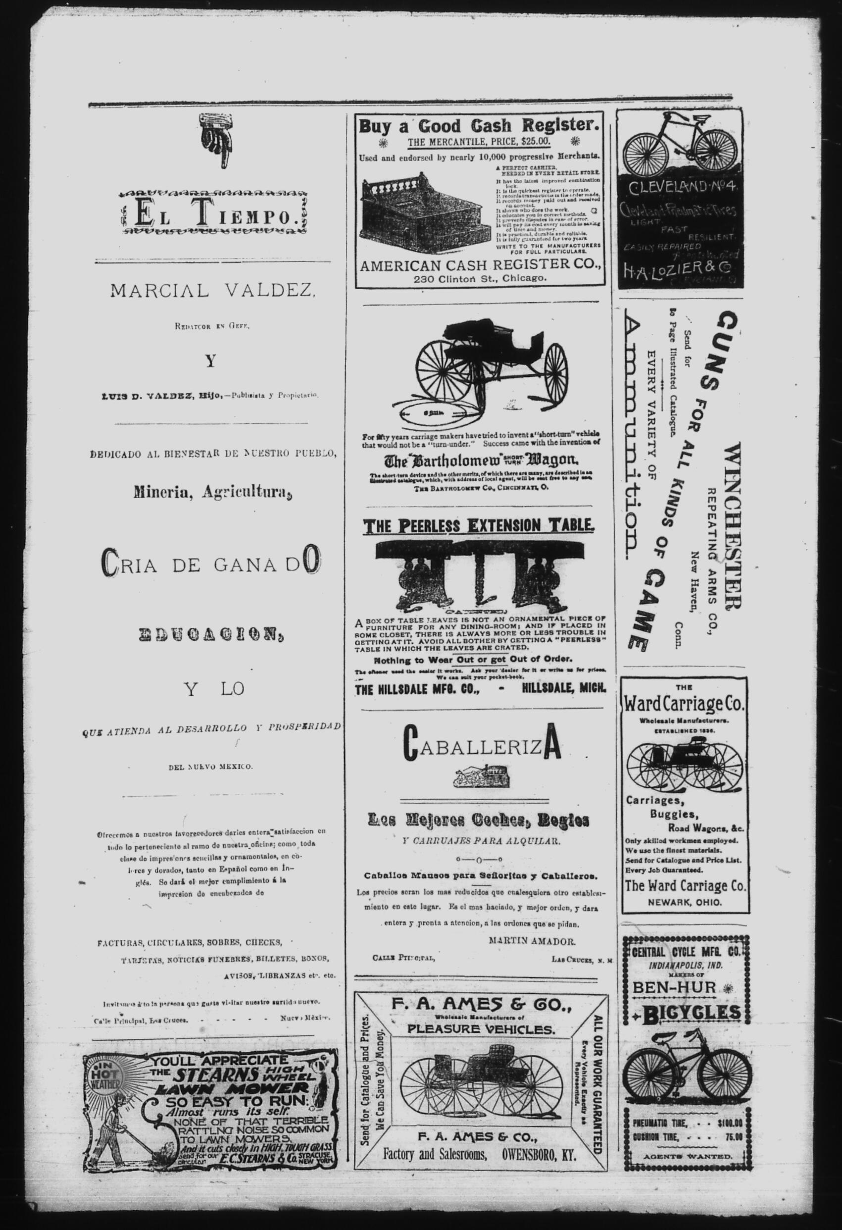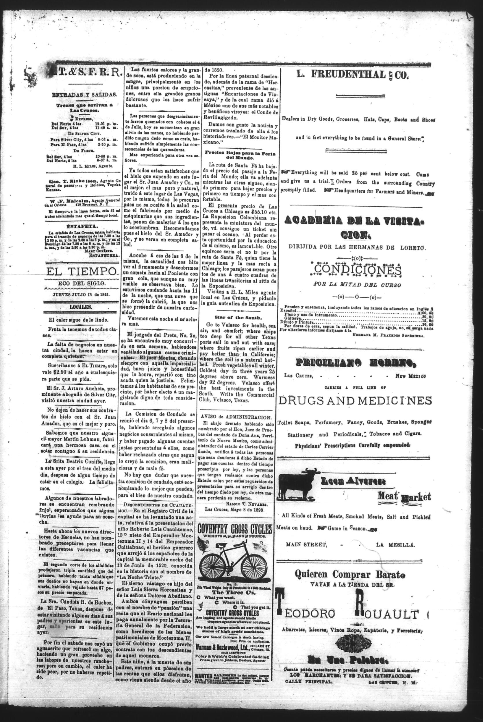 El Tiempo (Las Cruces, New Mexico, United States), 1893, July 13. Periodicals in the US-Mexico Border Region. https://latinonewspapers.com/s/eng/item/86371.