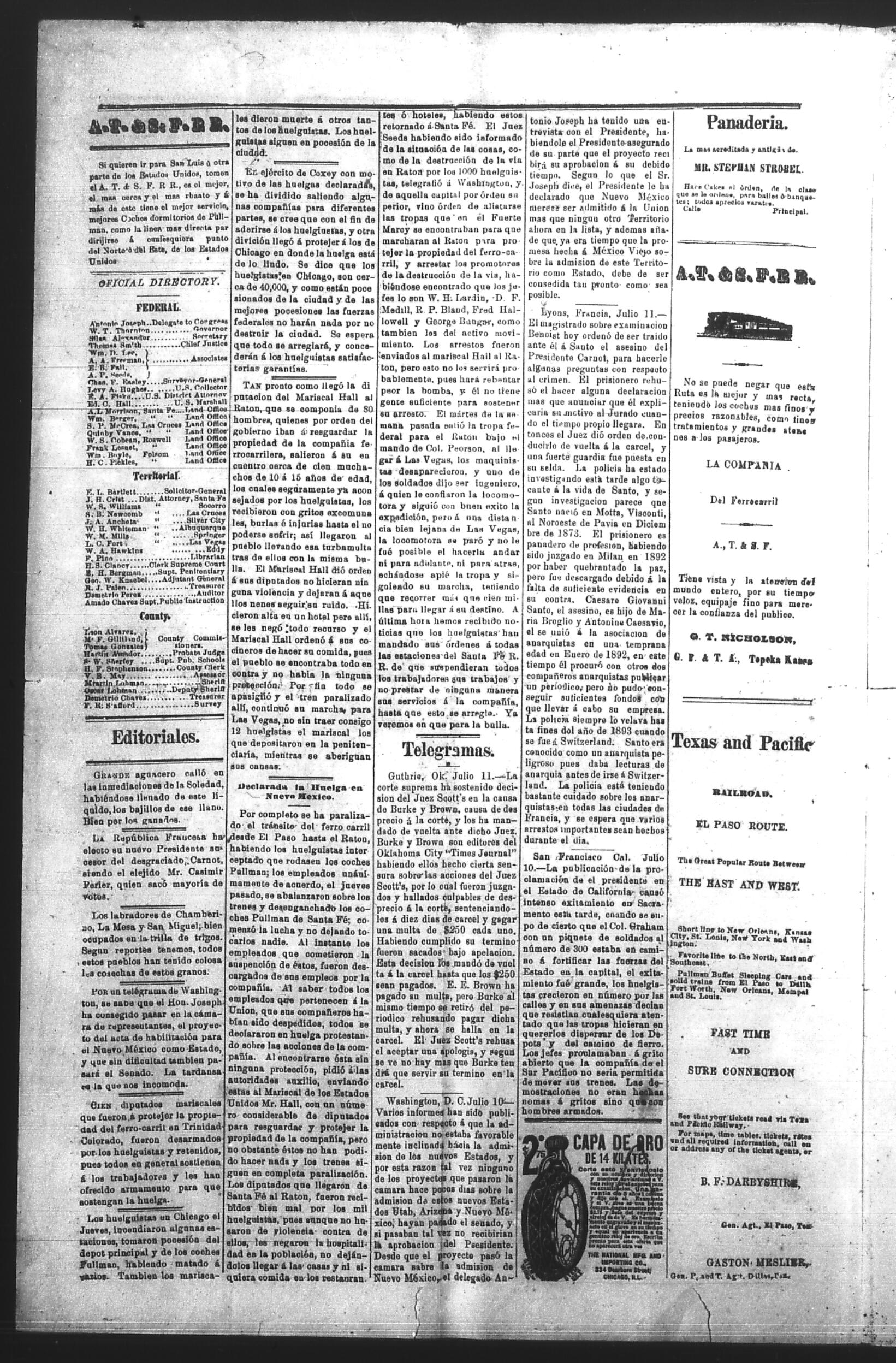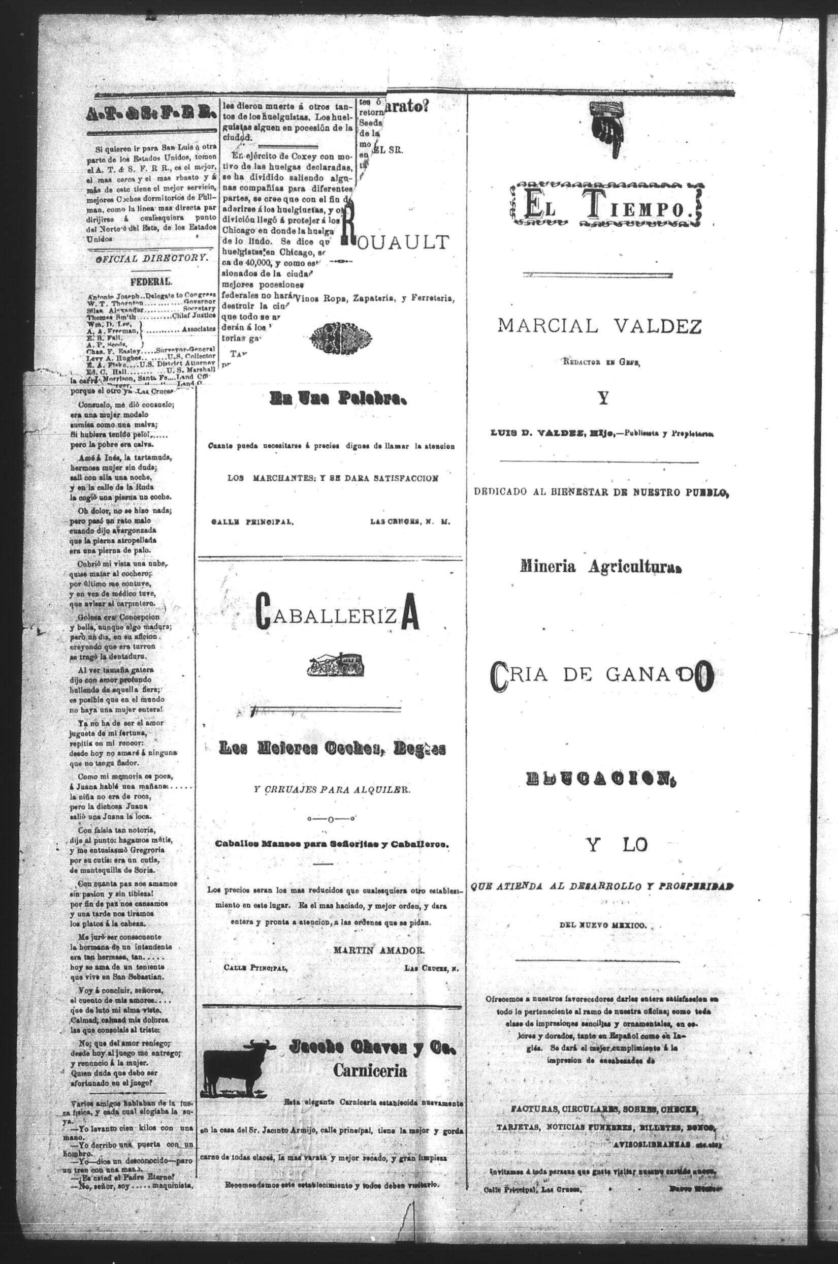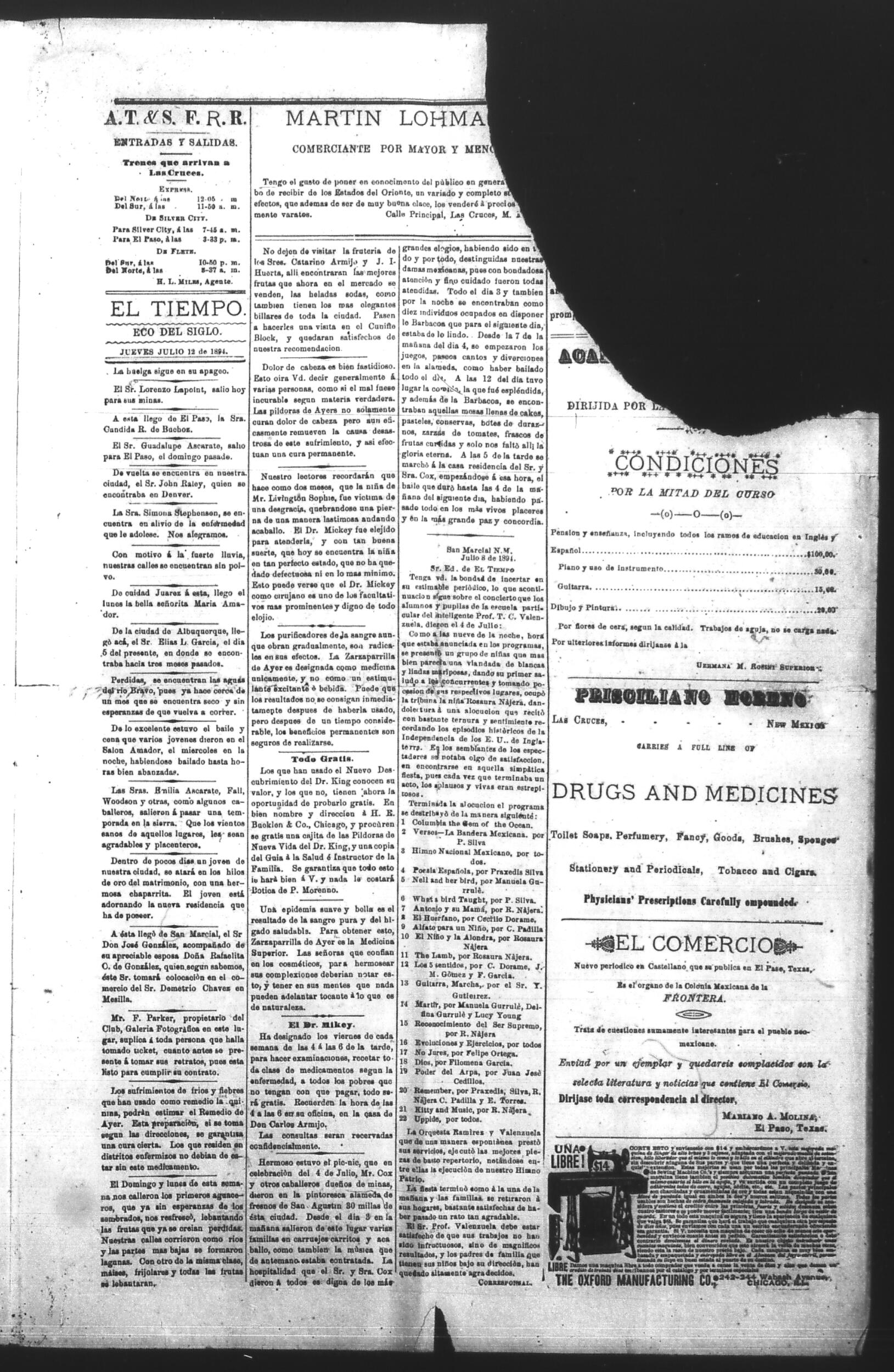 El Tiempo (Las Cruces, New Mexico, United States), 1894, July 12. Periodicals in the US-Mexico Border Region. https://latinonewspapers.com/s/eng/item/86384.