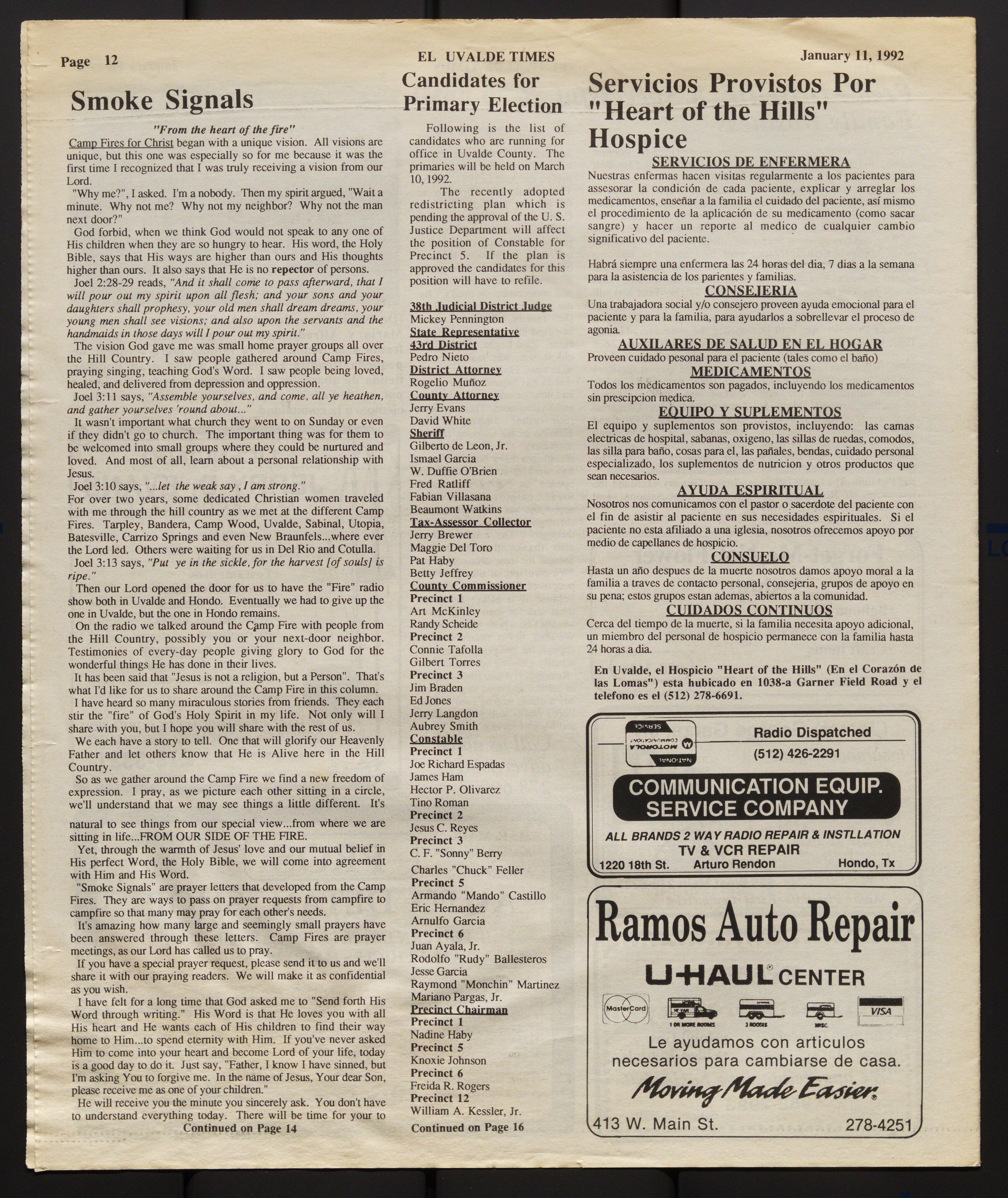 (1992, January 11). El Uvalde Times. Available from Periódicos de la frontera México-Estados Unidos: https://latinonewspapers.com/s/es/item/60248.