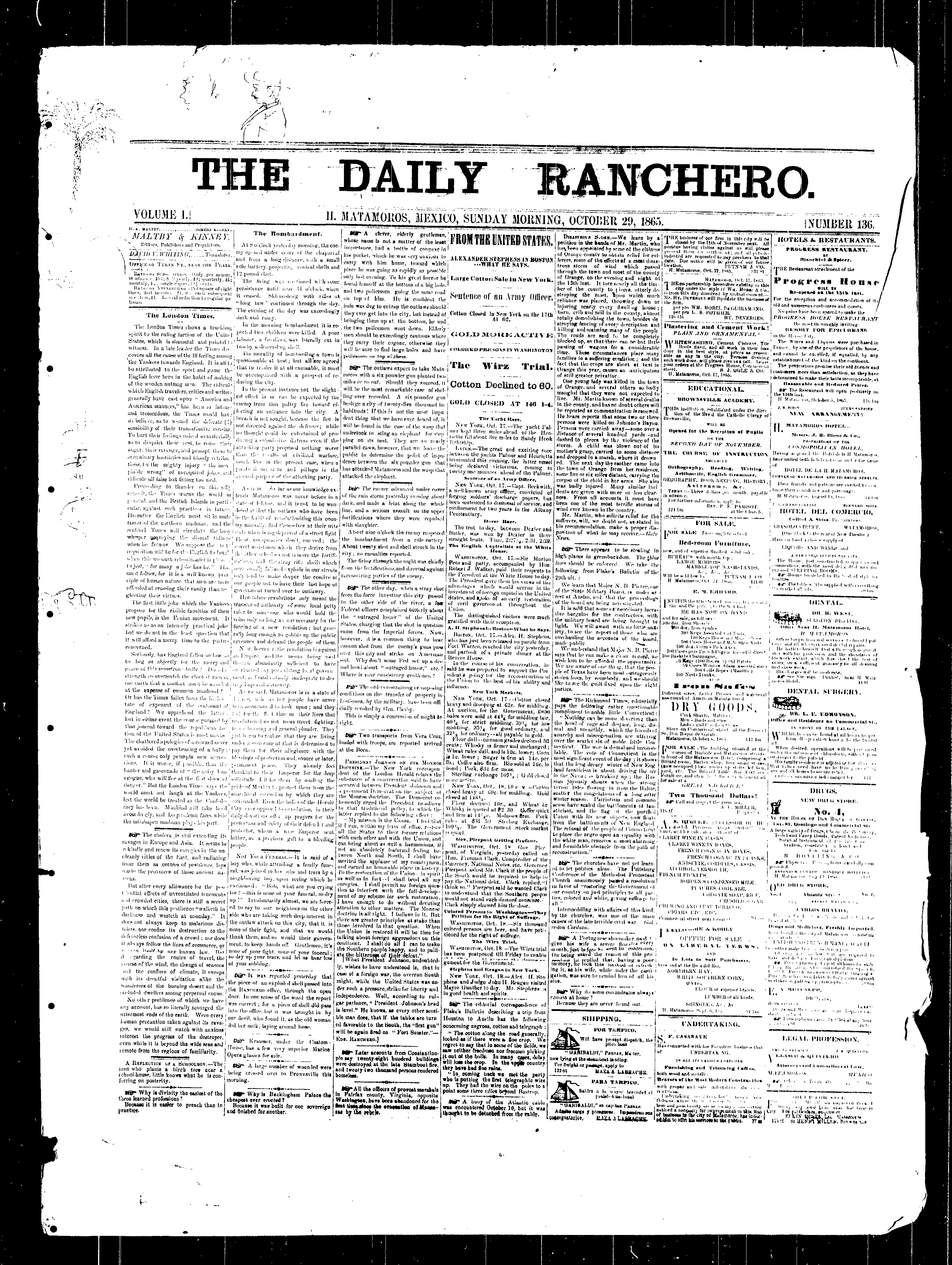 The Daily Ranchero/El Ranchero Diario, Volume I, Number 136, October 29, 1865