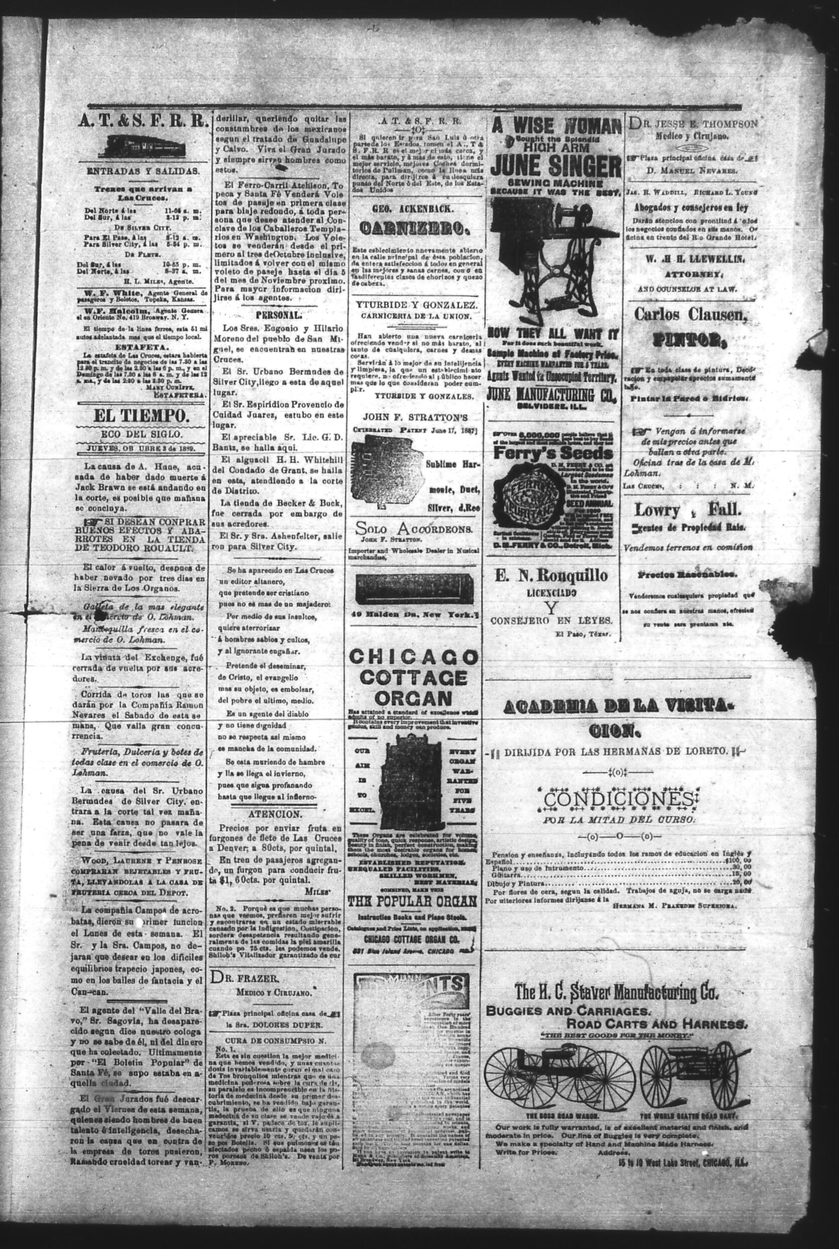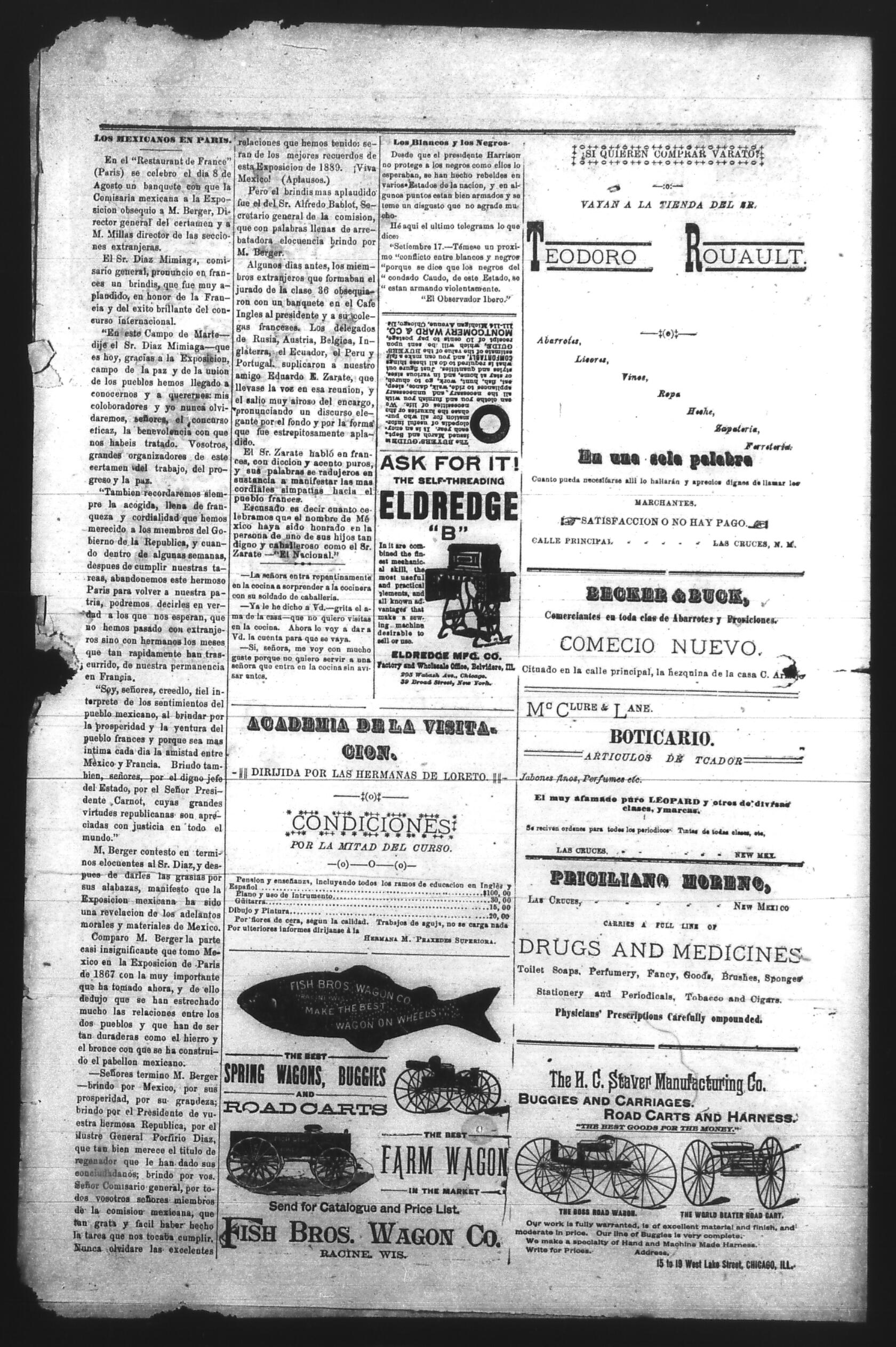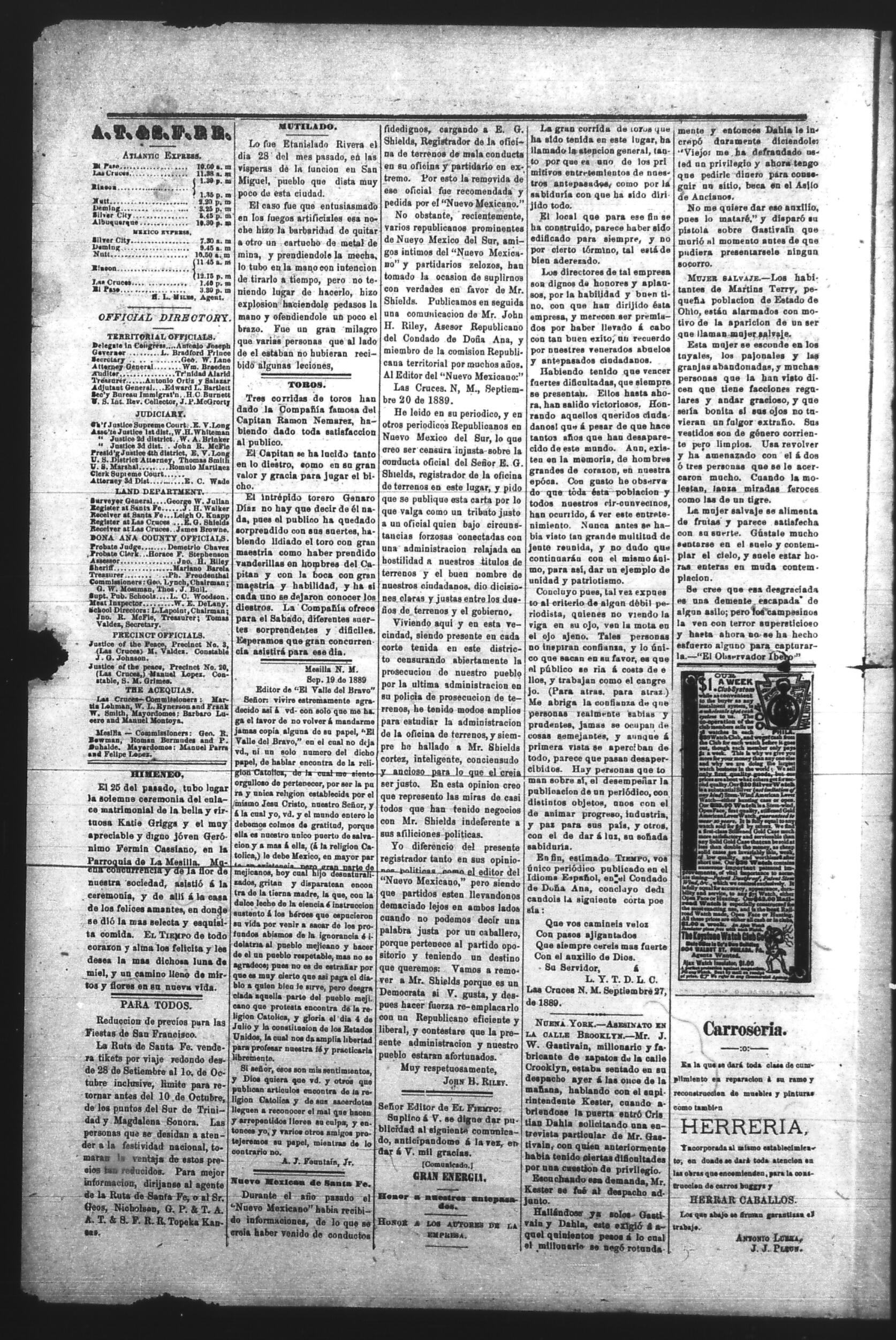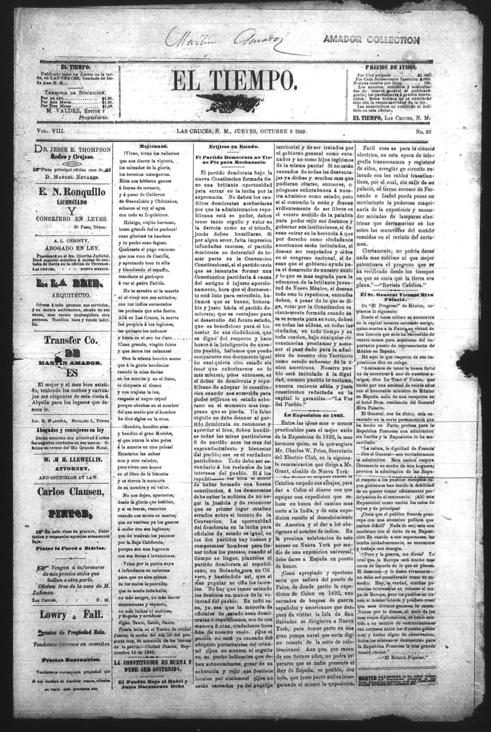 El Tiempo (Las Cruces, New Mexico, United States), 1889, October 3. Periódicos de la frontera México-Estados Unidos. https://latinonewspapers.com/s/es/item/86297.