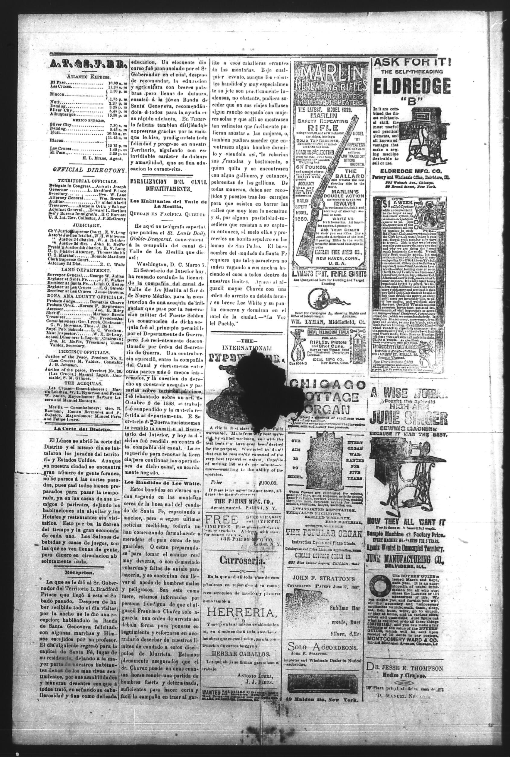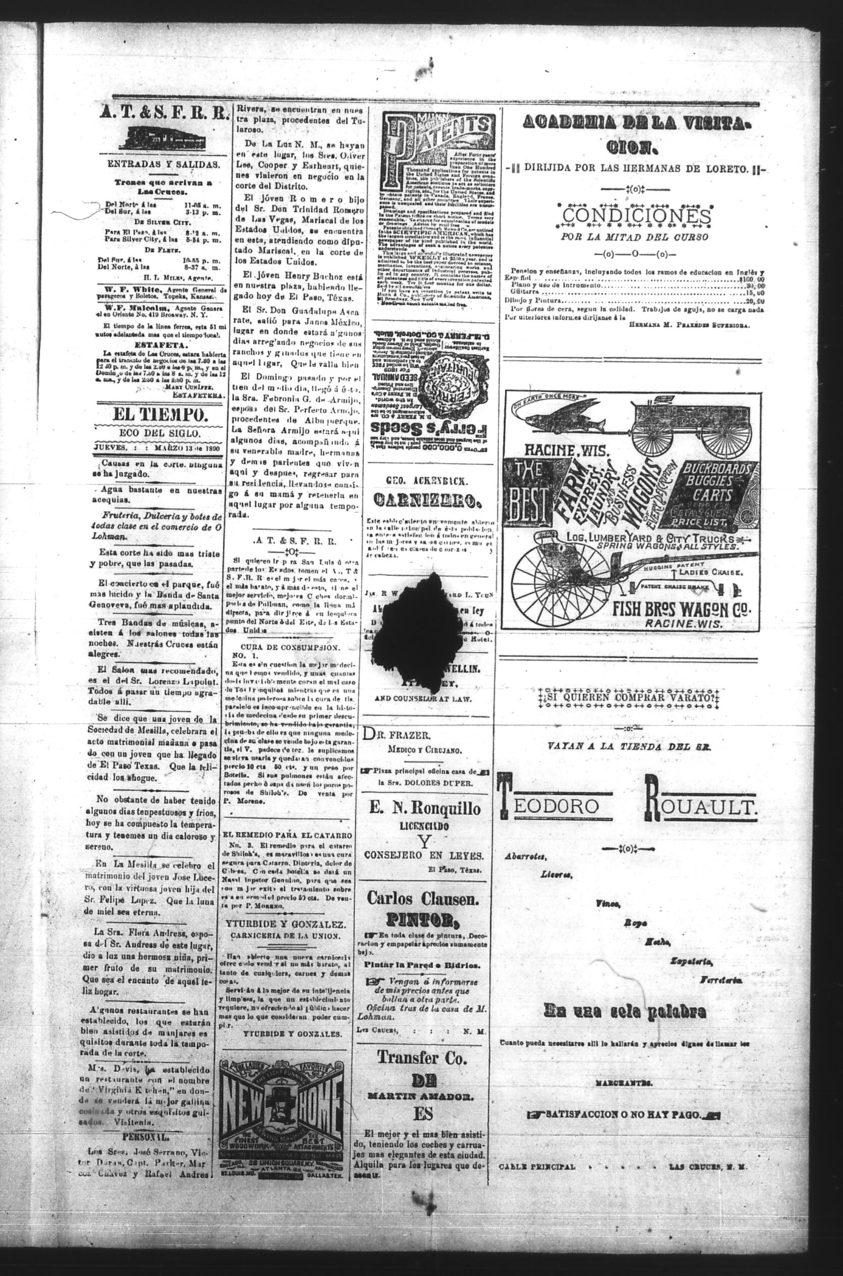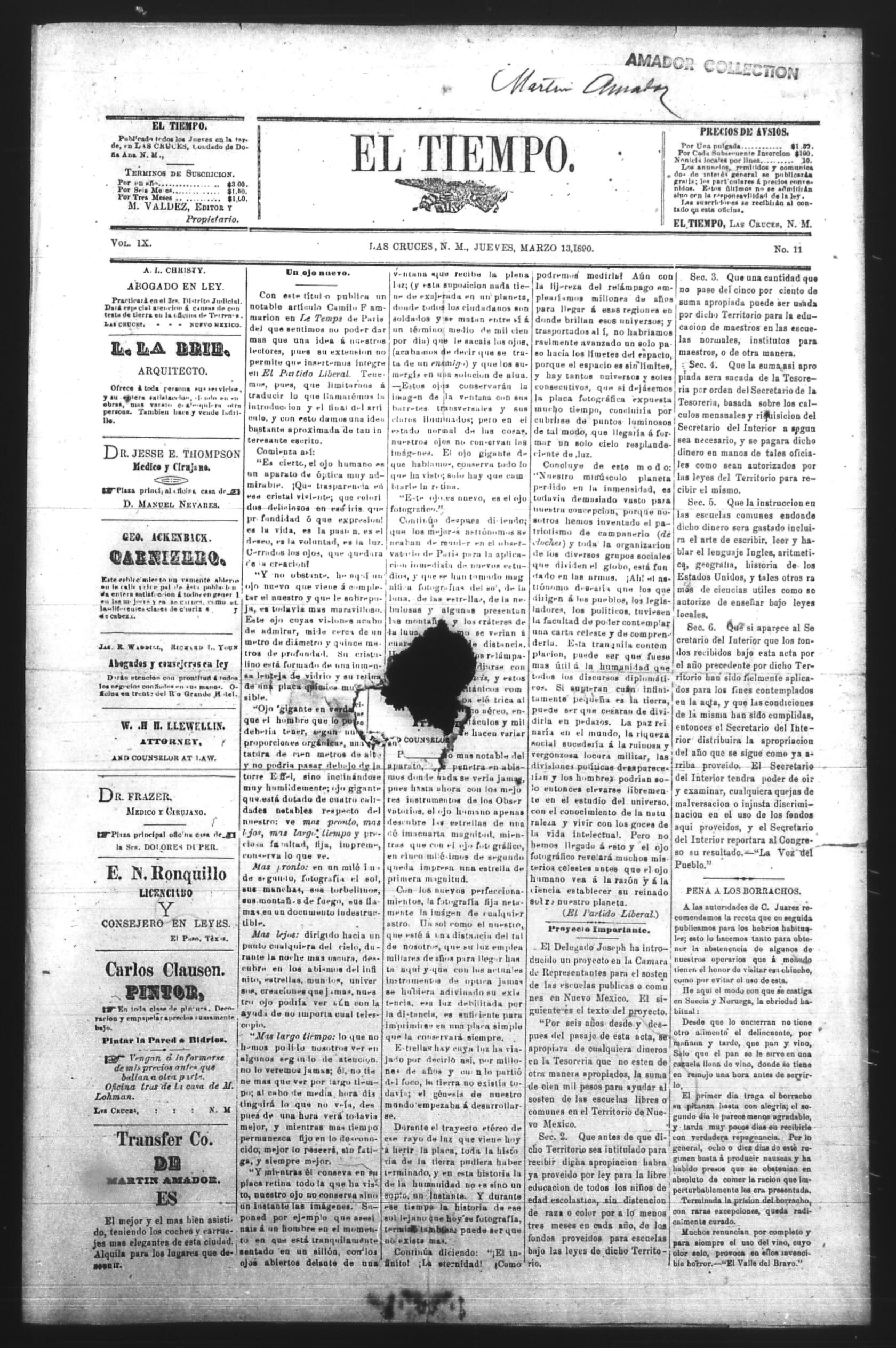 El Tiempo (Las Cruces, New Mexico, United States), 1890, March 13. Periódicos de la frontera México-Estados Unidos. https://latinonewspapers.com/s/es/item/86308.