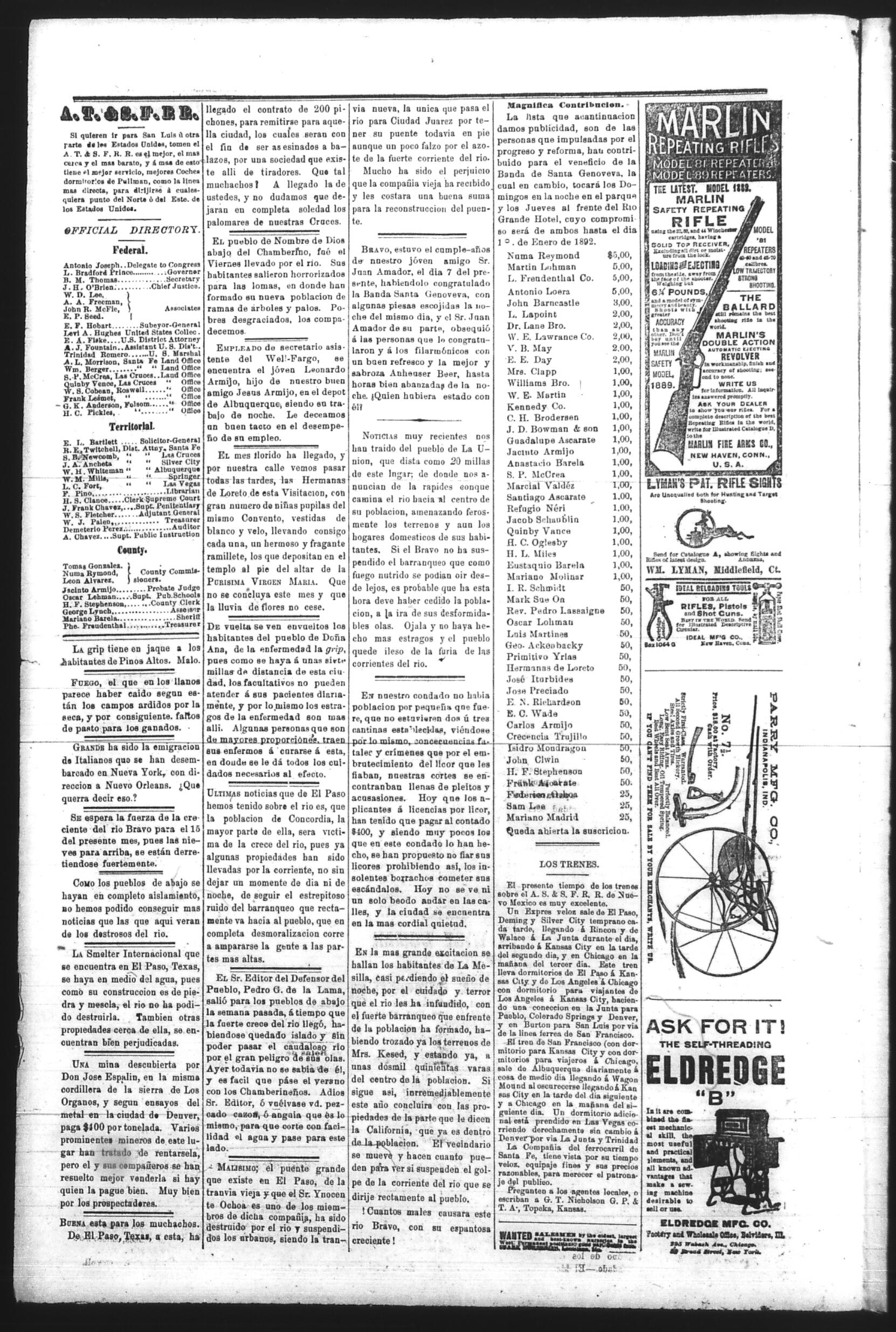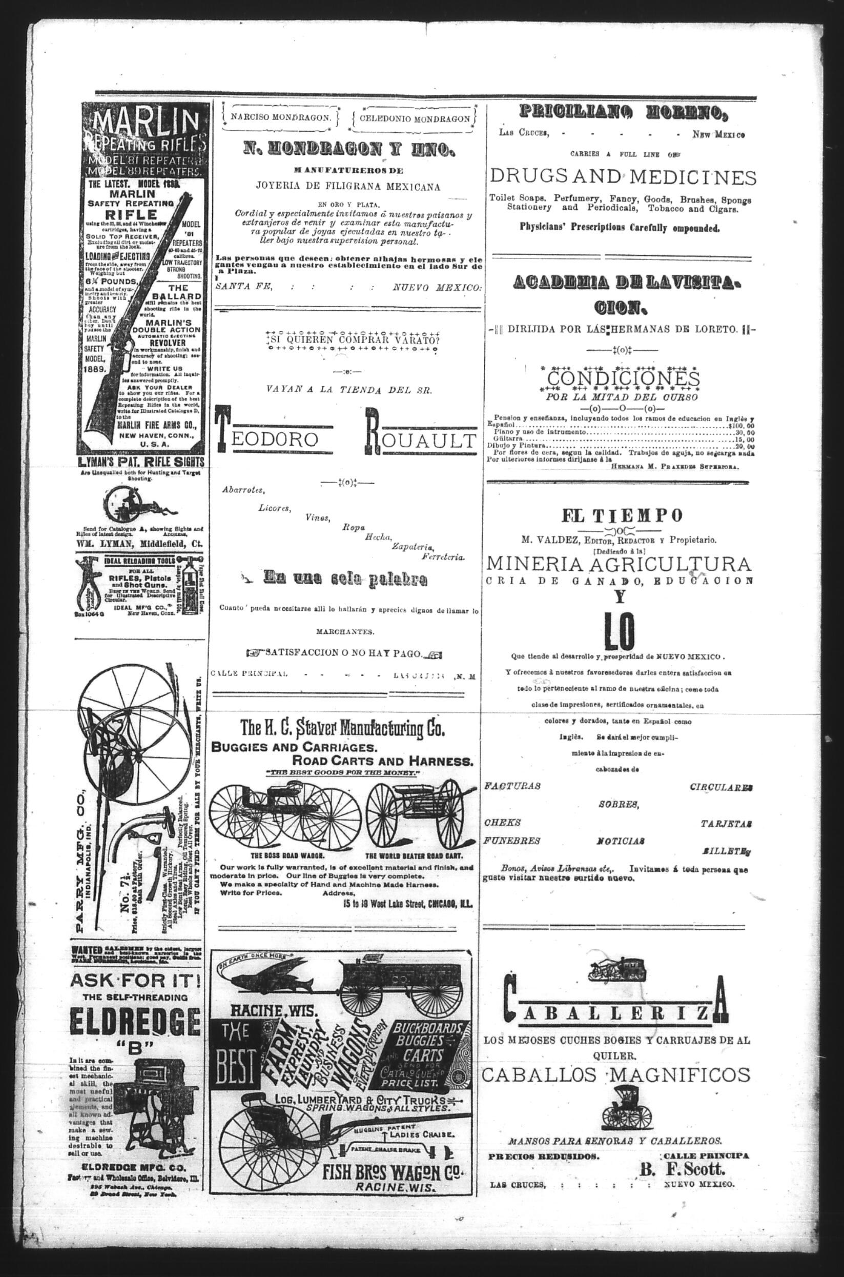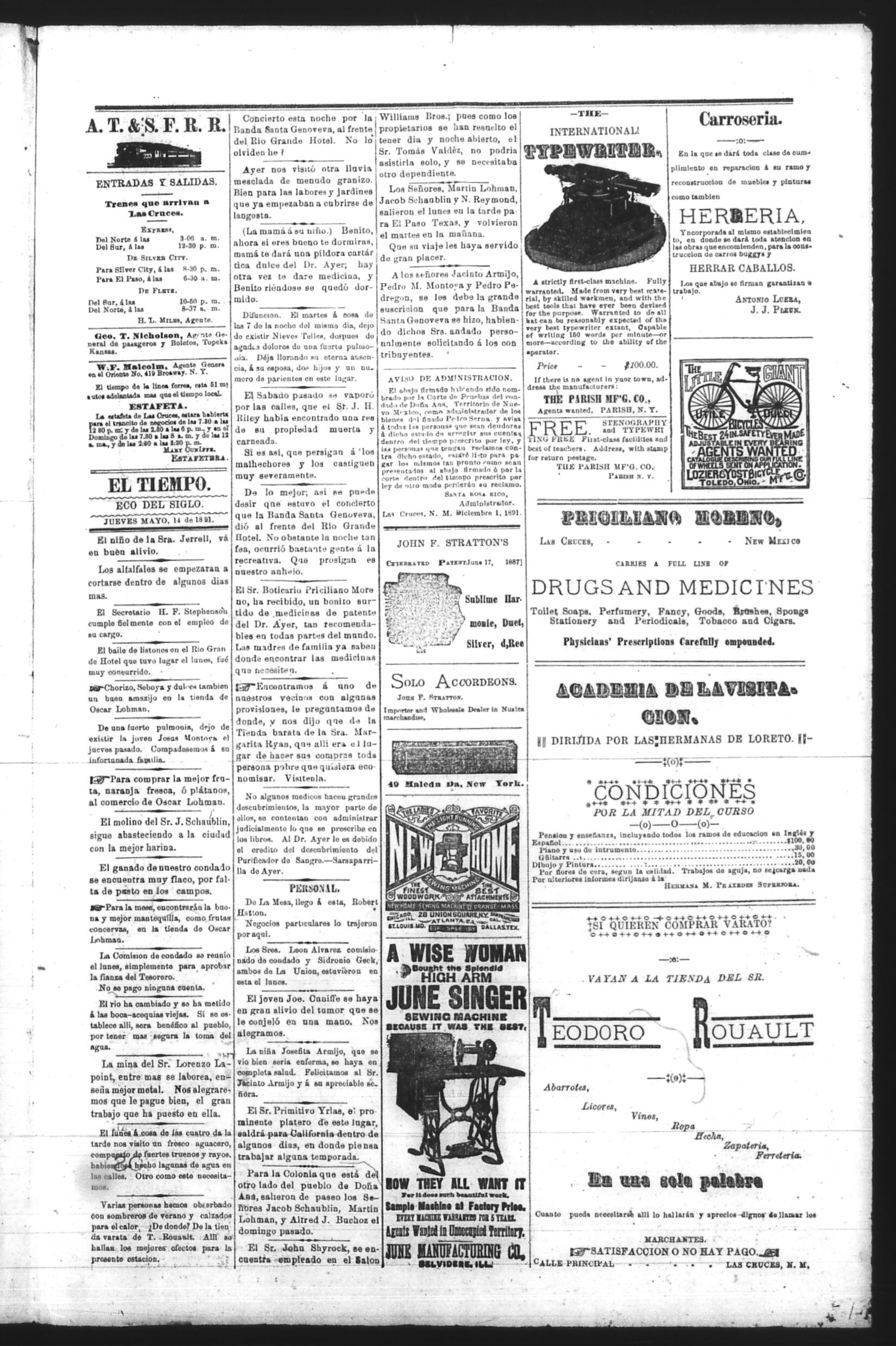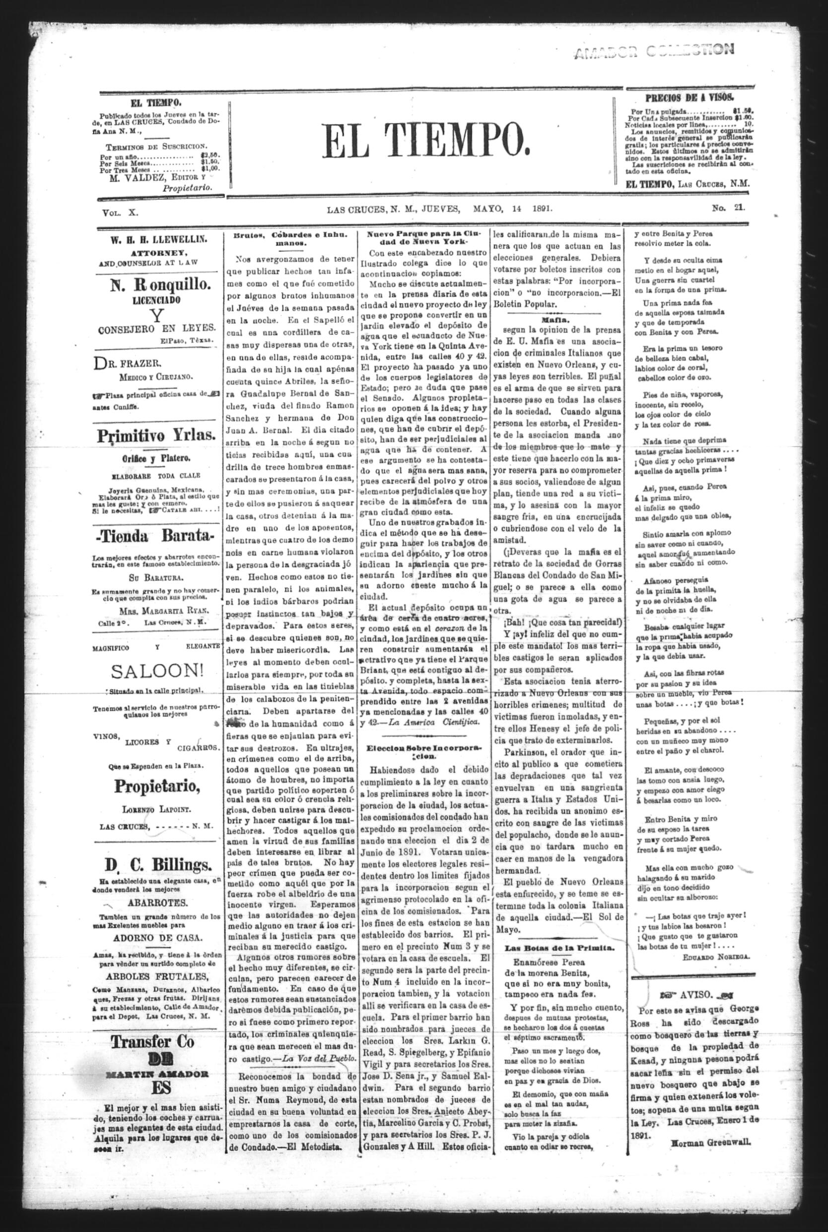El Tiempo (Las Cruces, New Mexico, United States), 1891, May 14. Periódicos de la frontera México-Estados Unidos. https://latinonewspapers.com/s/es/item/86320.