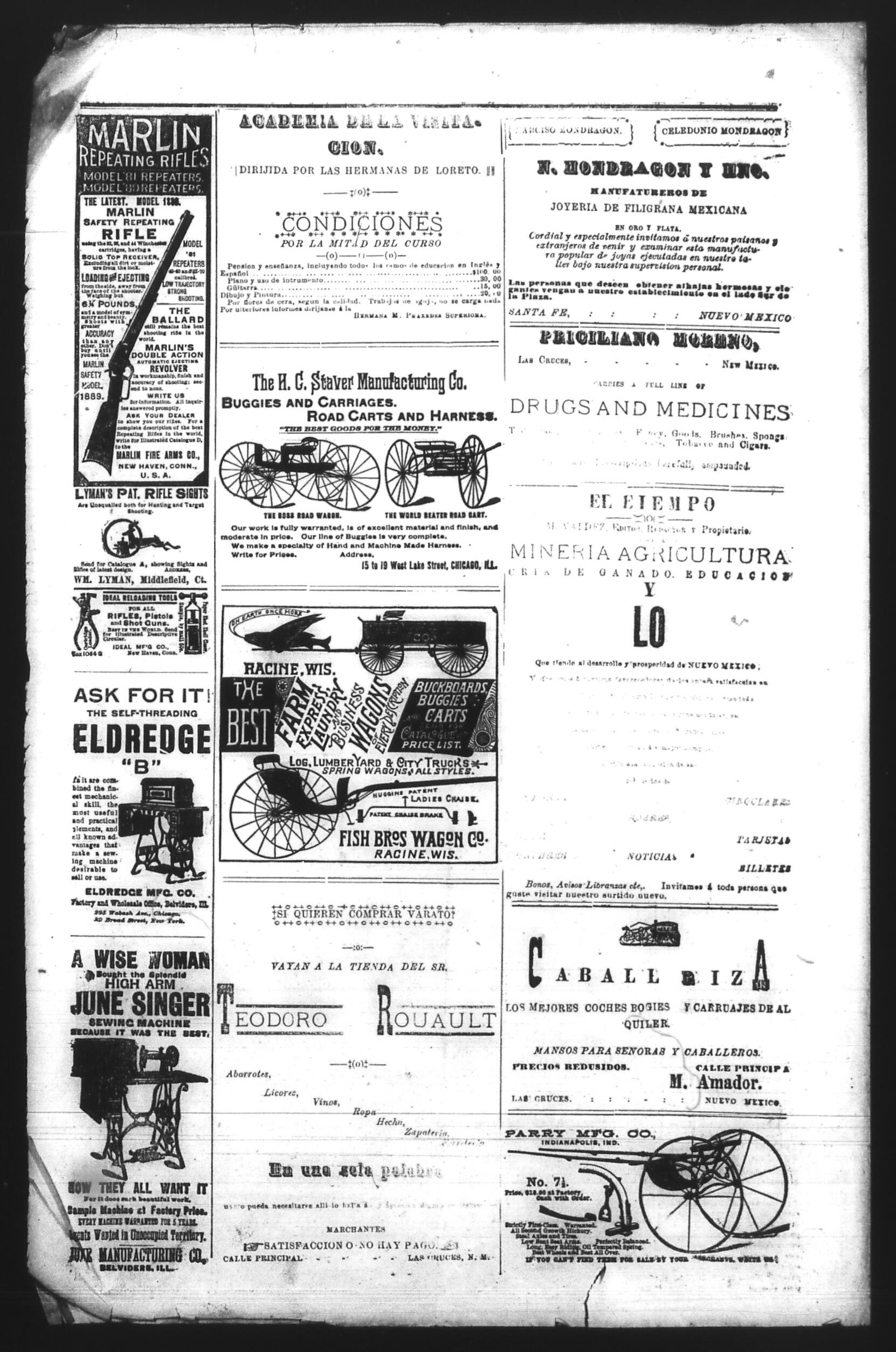 El Tiempo (Las Cruces, New Mexico, United States), 1891, December 17. Periódicos de la frontera México-Estados Unidos. https://latinonewspapers.com/s/es/item/86341.