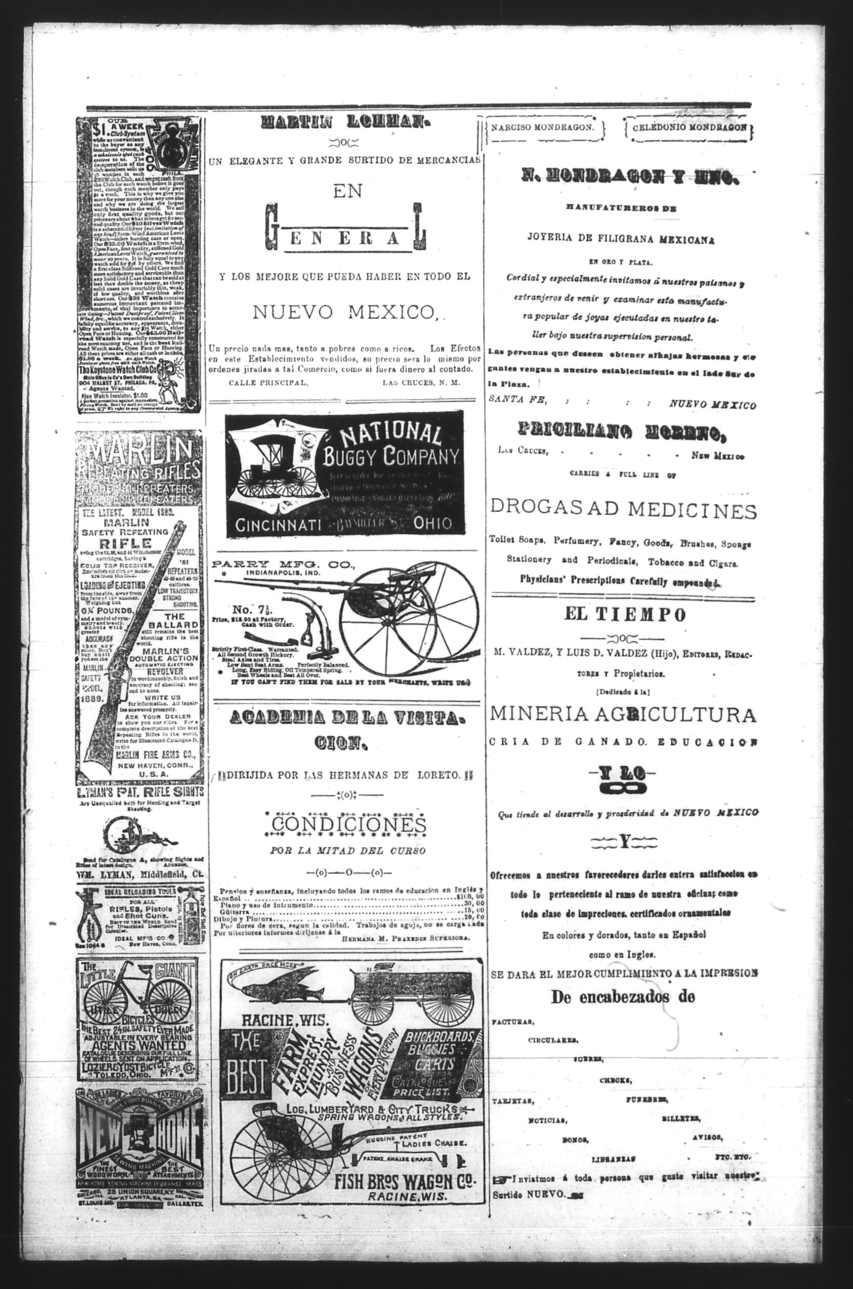 El Tiempo (Las Cruces, New Mexico, United States), 1892, May 26. Periódicos de la frontera México-Estados Unidos. https://latinonewspapers.com/s/es/item/86353.