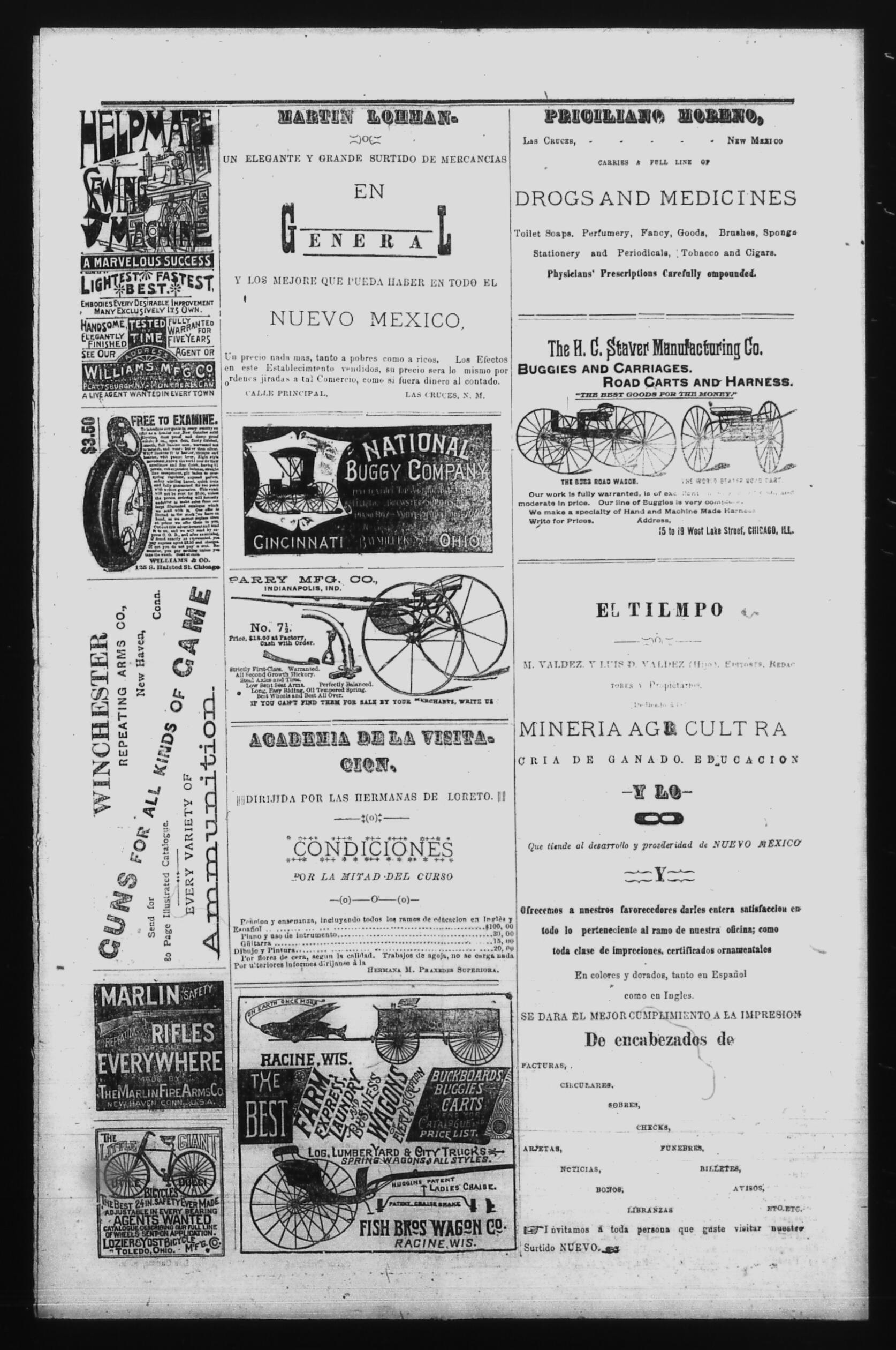 El Tiempo (Las Cruces, New Mexico, United States), 1892, August 25. Periódicos de la frontera México-Estados Unidos. https://latinonewspapers.com/s/es/item/86360.